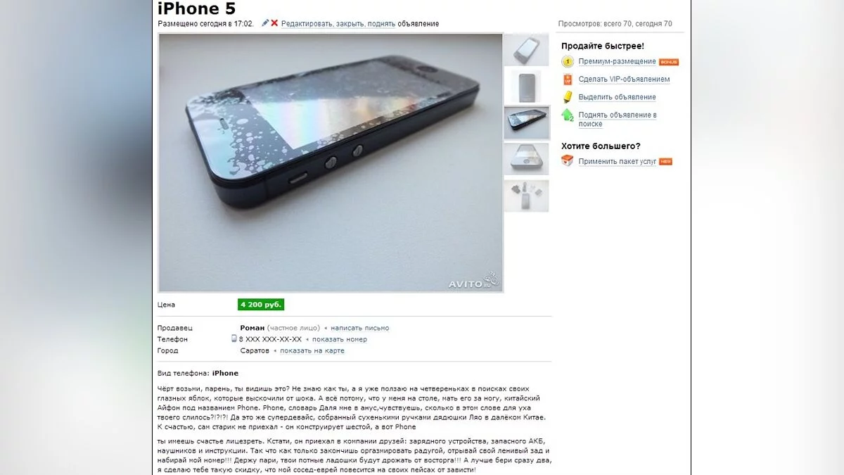 Нельзя оставаться первым вечно. В мире Авито iPhone стали дороже, но они и близко не стояли с Android-устройствами «среднего» ценового сегмента. Вот, пожалуйста, «яблочный» смартфон всего за 400 тысяч рублей. Выглядит как издевка над некогда великим брендом.