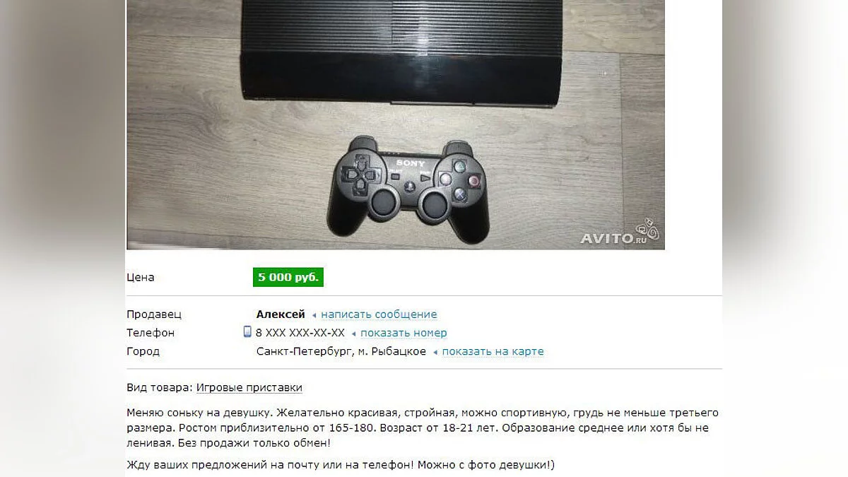 Консоль или девушка? Алексей с Авито сделал свой выбор и выставил на обмен свою старушку PS3. Однако зная, чего он лишается, он выставил не самые простые требования. Правильно! Если уж отказываешься от игр, то нужно знать себе цену!