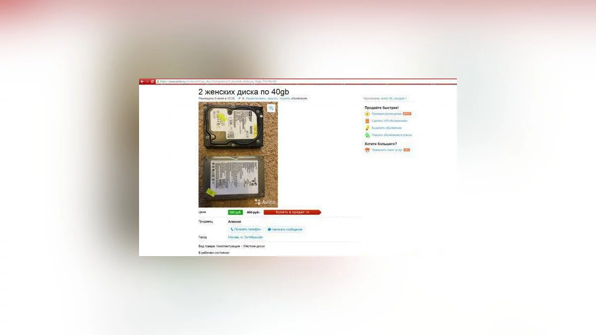 Объявление забавное, но знает ли Алексей о том, что на самом деле это жесткие диски? Возможно, он шутник, а может подшутили над ним. Объявление окутано тайной, но главное, что нам смешно, а значит не стоит задавать вопросов. Все так, как должно быть.