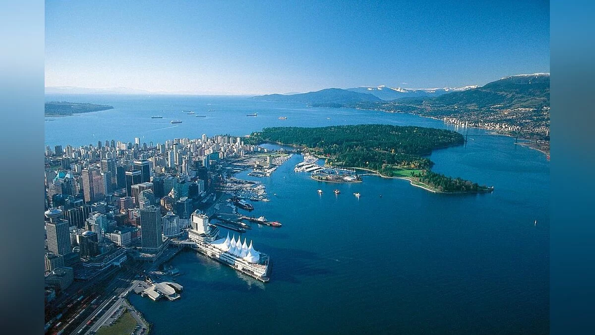 Рукотворные сооружения выглядят не менее впечатляюще, чем природные красоты. К примеру, пролетим над Ванкувером.