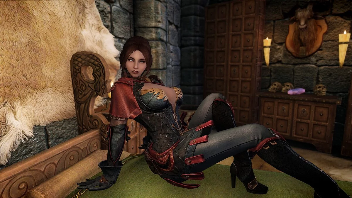 А этот мод добавляет возможность путешествовать вместе с прекрасной и бессмертной тёмной эльфийкой Калли. Встретить её можно в Зале достижений в Винтерхолде.