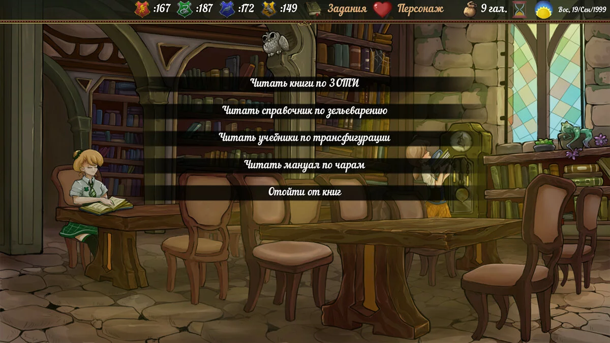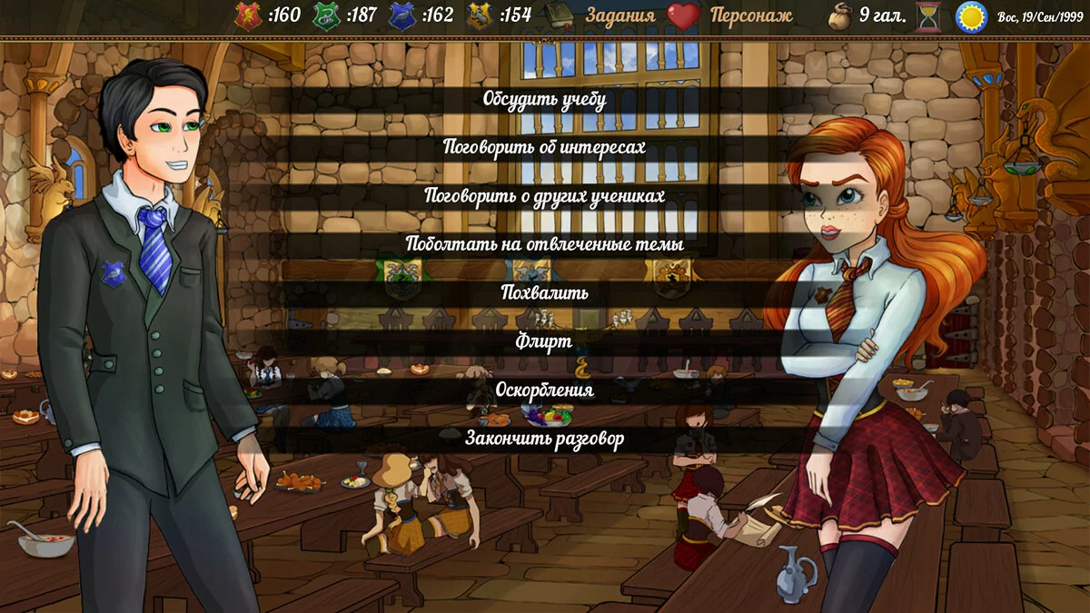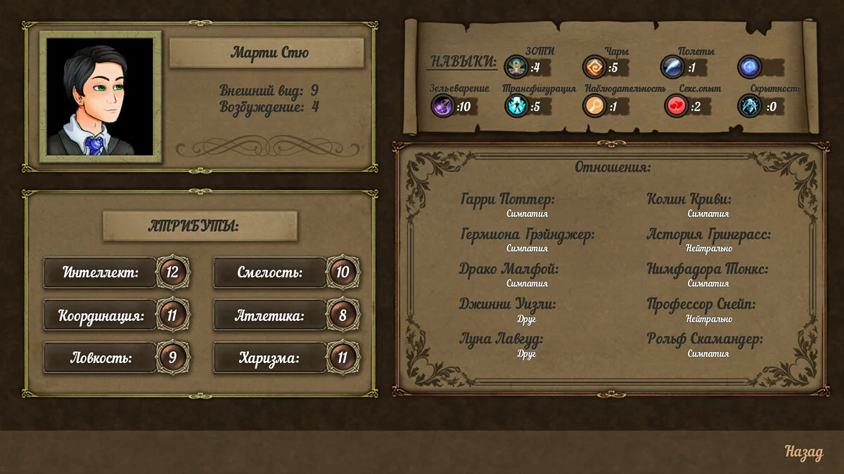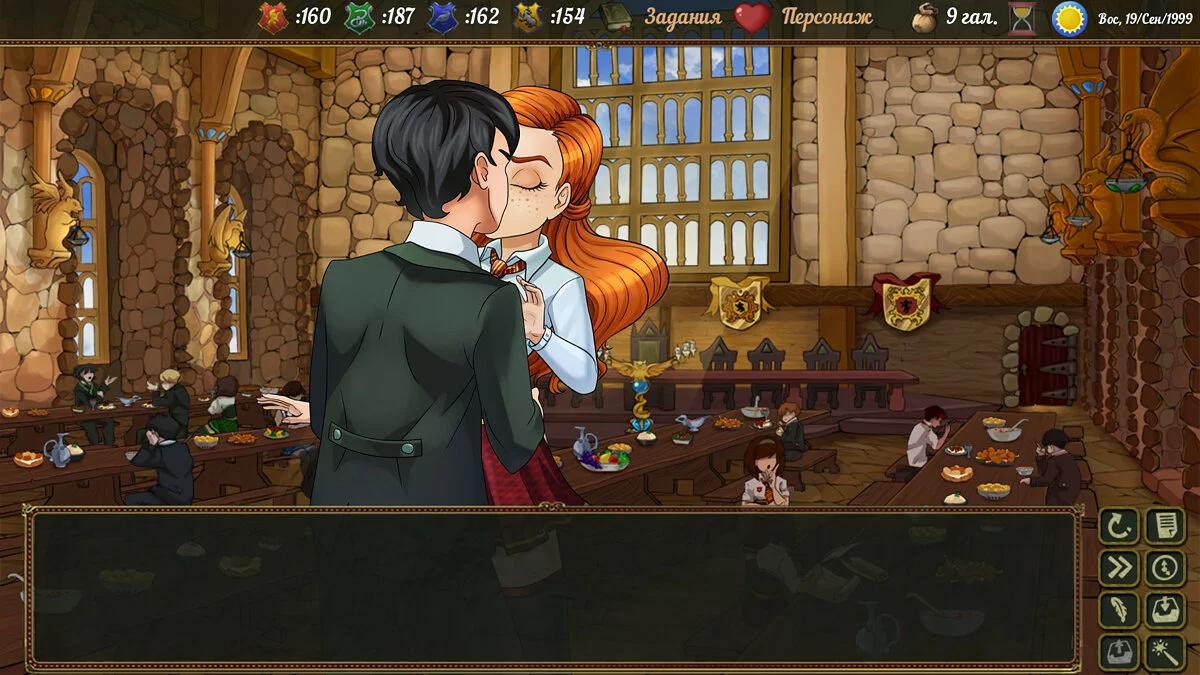 В редакторе персонажа можно выбрать пол и настроить внешность, в прологе определить факультет, а после — наслаждаться волшебством, убранством замка и… сценами для взрослых.