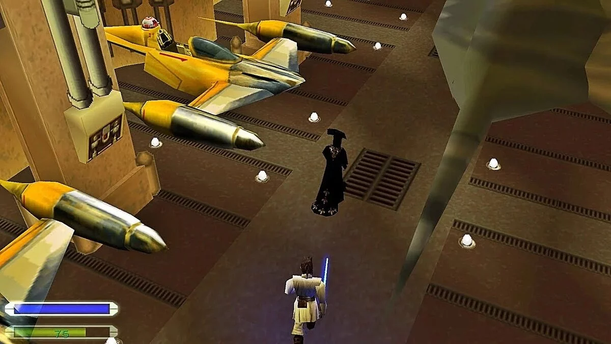 Прямой сиквел Dark Forces, в котором впервые появилась отличительная черта серии — возможность переключаться на режим от третьего лица, чтобы использовать особые способности и сражаться на световых мечах. Правда, как слэшер игра сегодня не впечатляет. С видом из глаз она выглядит намного лучше.