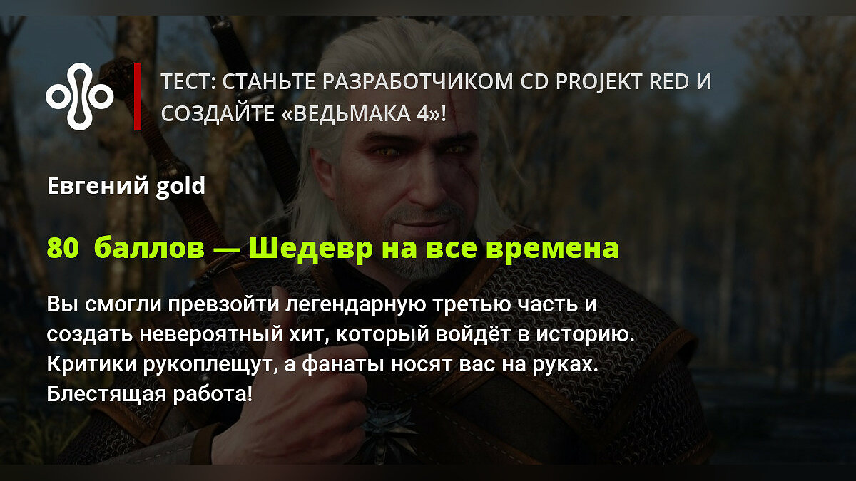 Тест: станьте разработчиком CD Projekt RED и создайте «Ведьмака 4»!