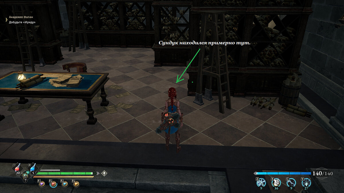 Сундук с предметом находится справа от голограммы, у первого стеллажа.