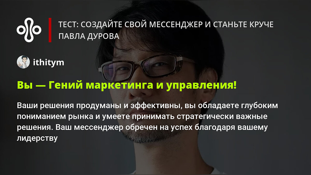 63 балла... Я, видимо, не так понял тест. Я думал, что чем больше, тем лучше...