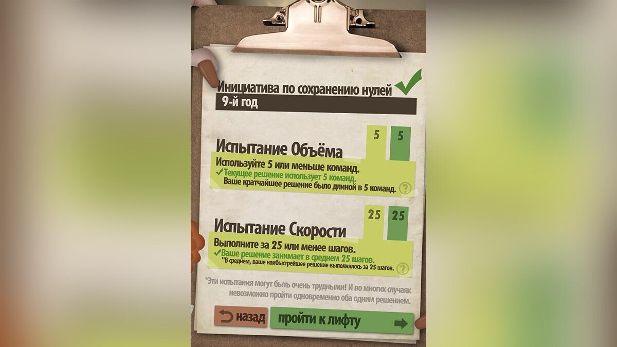 Дополню свой комментарий. свистнул решение «Инициатива по сохранению нулей.» 5 команд, 25 шагов. (Спасибо root, со стим комьюнити).