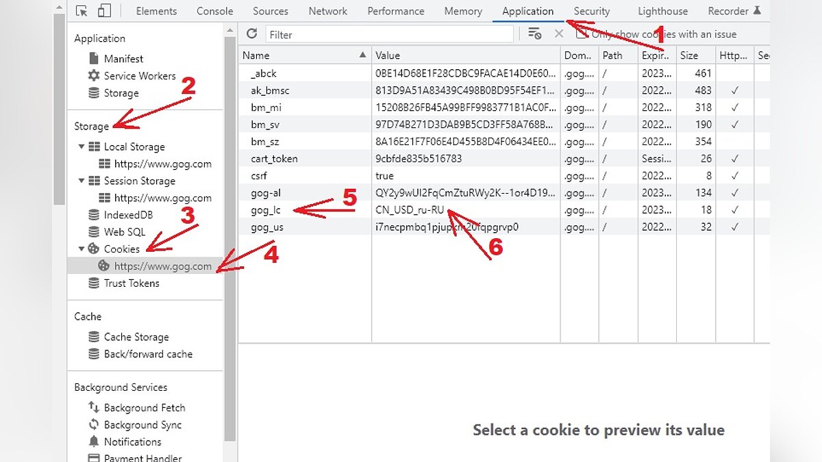 В Хроме нажимаем F12 и по картинке меняем куки gog_lc на CN_USD_ru-RU.