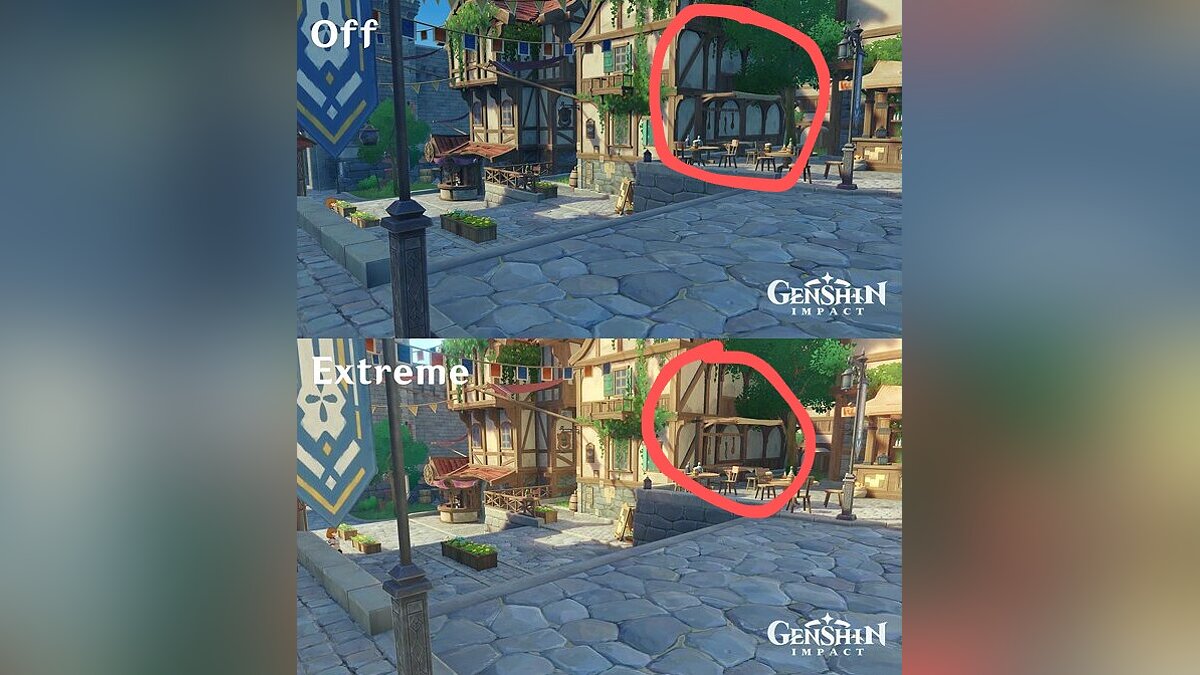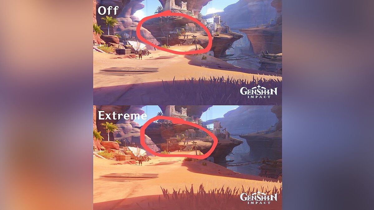 в большинстве картинок действительно нет разницы, но это и не rtx и уж тем более не трассировка путей, чтобы кардинально менять освещение. больше всего видно разницу на 4й картинке. если приглядеться, то можно увидеть, что земля отражает свет от солнца и придает оранжевый окрас окружающим скалам. также разницу можно заметить на 1й картинке, там видно, что тень мягче переходит от более освещенной части к менее освещенной, а не сплошная темная тень, как на картинке сверху