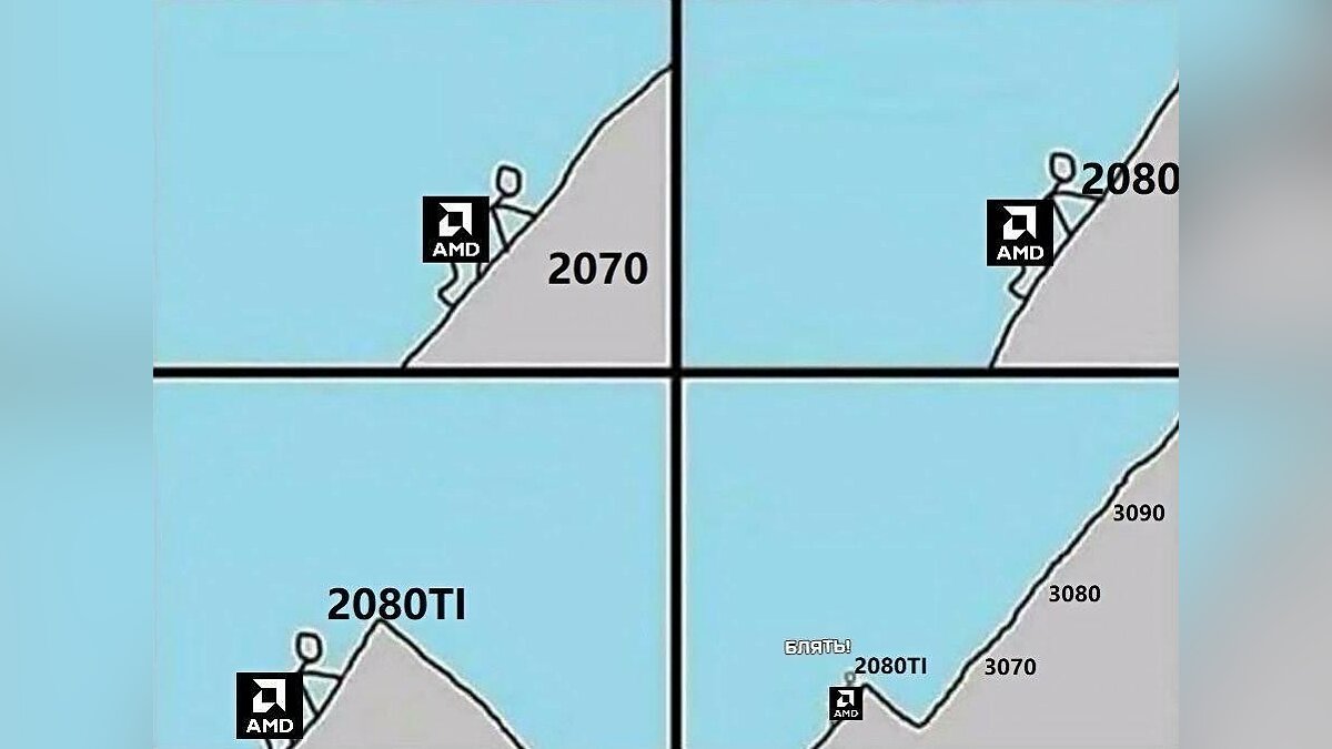 P.S: не думаю даже, что АМД поравняются со «средними» видюхами в лице 3070 и 3060, будут мерить по прошлому поколению небось опять. Не понимаю, что мешает им выстрелить также, как в 2016 году с RX 480/470, с тех пор АМД только в догоняющих, и цены просят не шибко ниже за свои творения