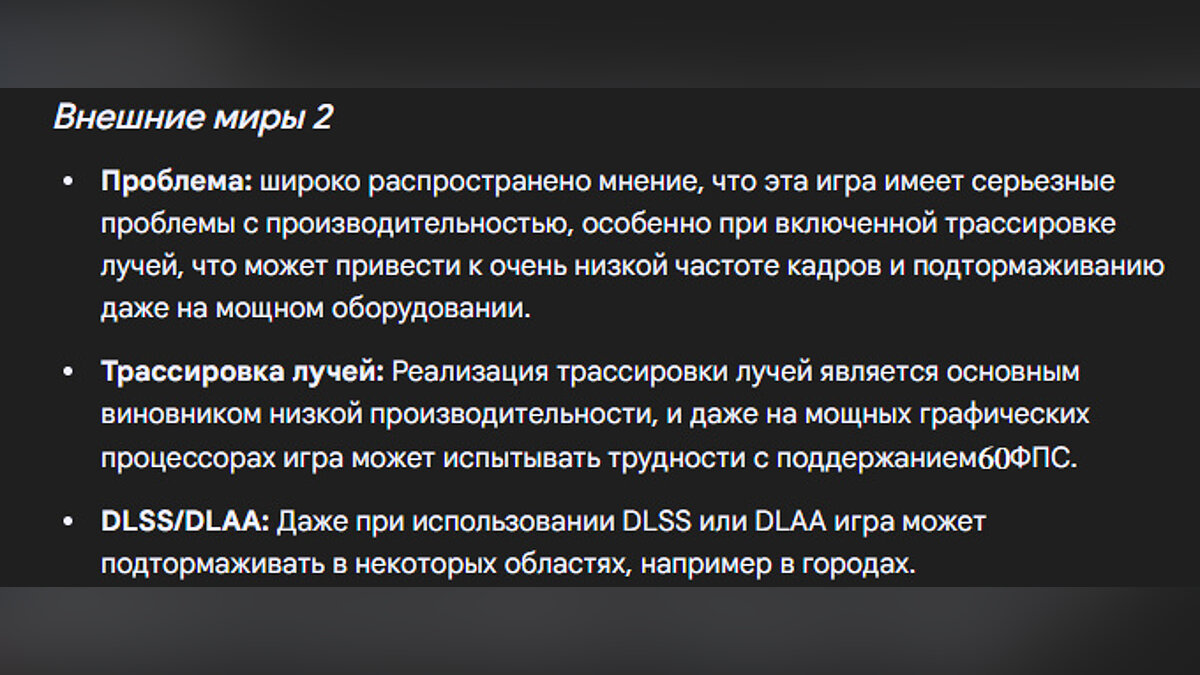 "Что-то серьезно не так с оптимизацией The Outer Worlds 2.Во время прохождения The Outer Worlds 2 я столкнулся с серьёзными проблемами производительности, связанными с трассировкой лучей — возможно, игра вообще не оптимизирована.