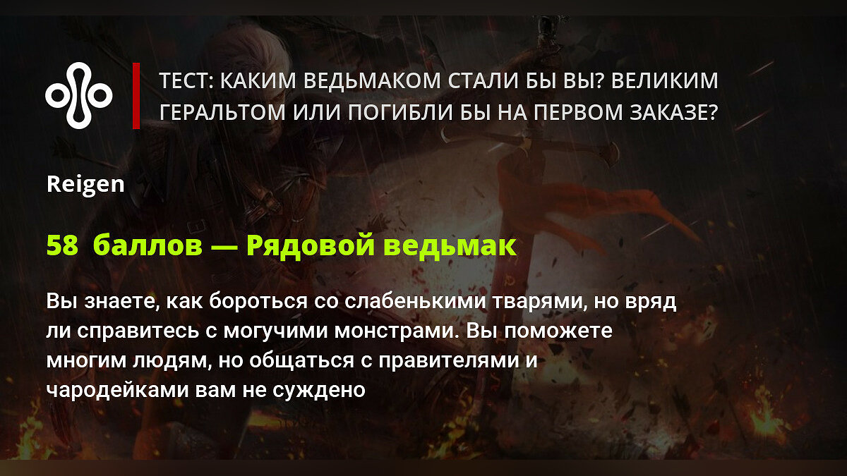 Тест: каким ведьмаком стали бы вы? Великим Геральтом или погибли бы на первом заказе?