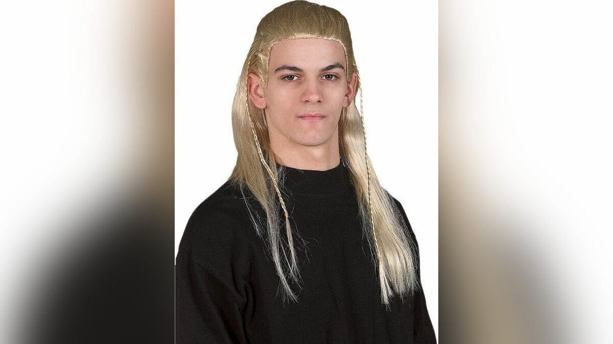 "Волосами, в книгах перехваченными на лбу кожаной повязкой, в играх же он собирает их в хвост на затылке."