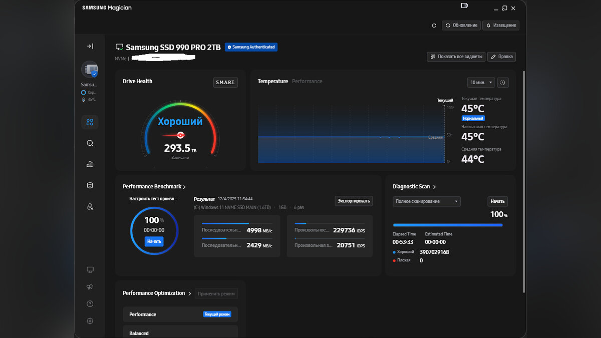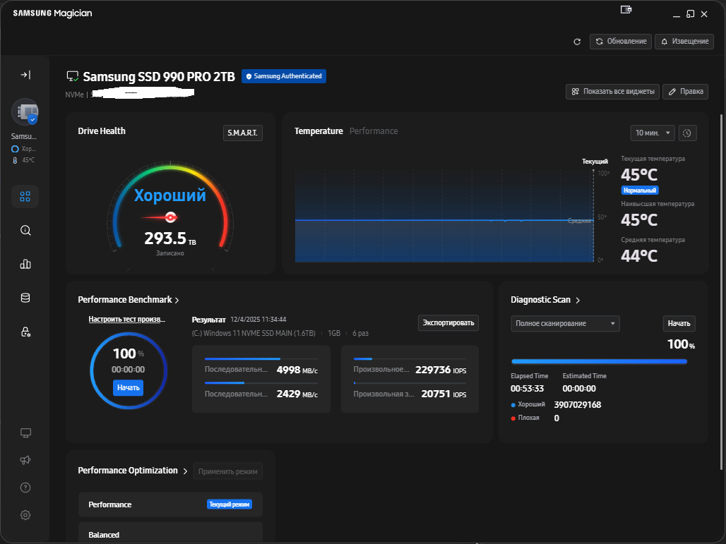 Плюс я активно использую ОЗУ под PrimoCache: кэш первого уровня в RAM для HDD, а L2 крутится на SSD. Очень заметно ускоряет работу, особенно на больших объёмах данных.