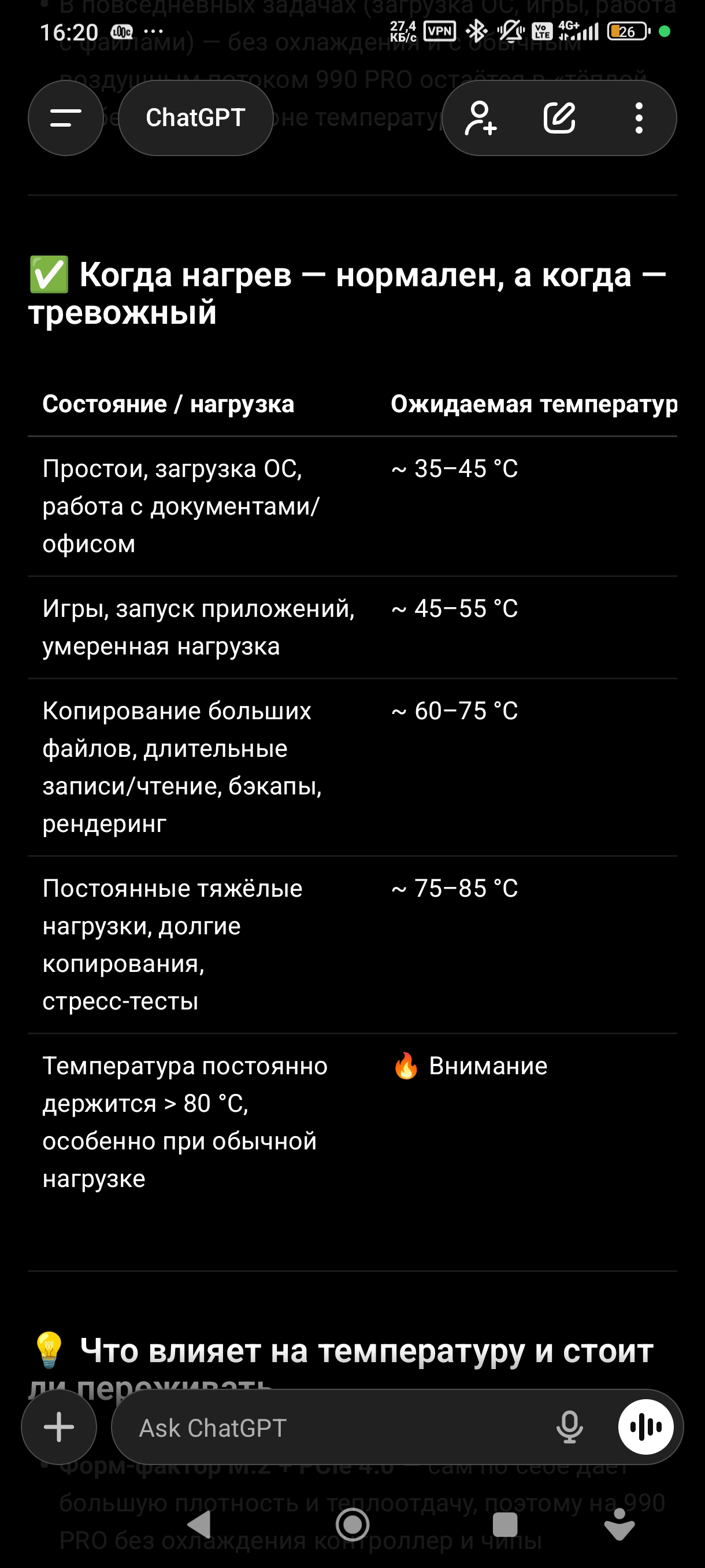 Из коробки NVME может в нагрузке греться градусов до 70-75. При 80 уже начнет тротлить. Так пишут- сам проверять не стал.