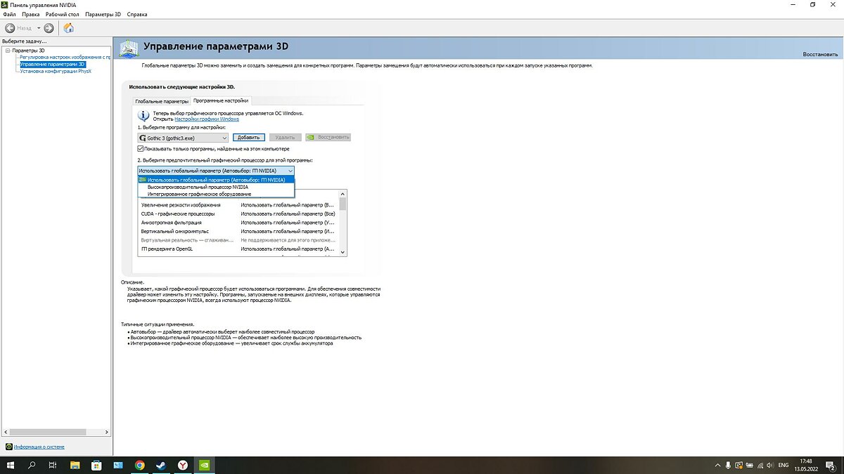 Если ноутбук с карточкой Nvidia попробуй зайти в Панель управления NVIDIA — Управление параметрами 3D — Программные настройки — выбрать программу для настройки и поставить Использовать глобальный параметр ГП NVIDIA (скриншоты как пример). Т.к. скорее всего в ноутбуке как и у меня две карточки стоят и у старых игр бывает такое что автоматом ставит амд (в моём случае), если же у тебя карта амд то пробуй искать что то подобное наверняка в их утилите есть возможность переключения видеокарты в приложениях
