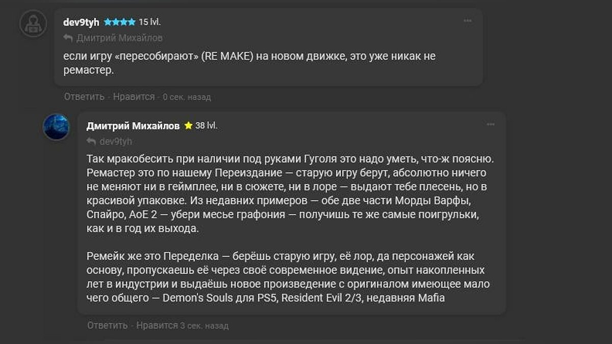 если игру «пересобирают» (RE MAKE) на новом движке, это уже никак не ремастер.