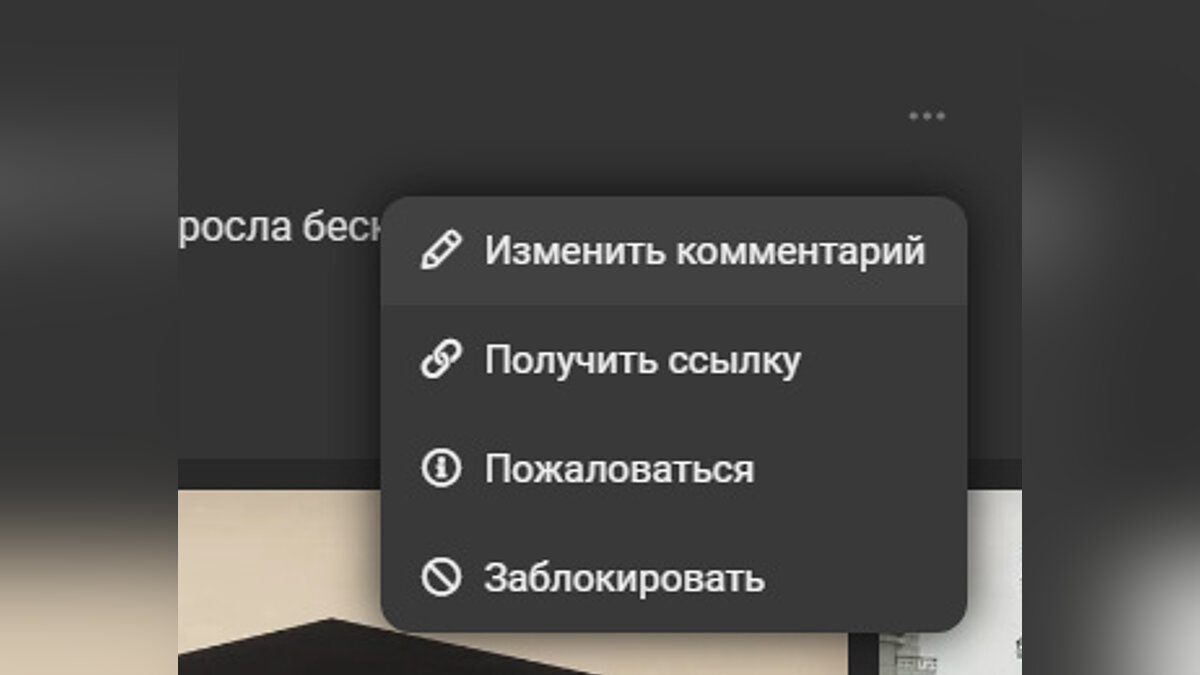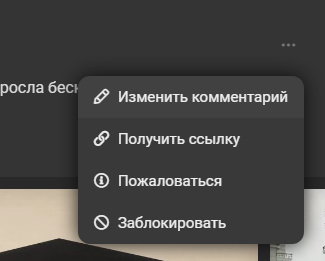 Чтобы изменить коммент, нажмите на три точки и выберите соответствующий пункт