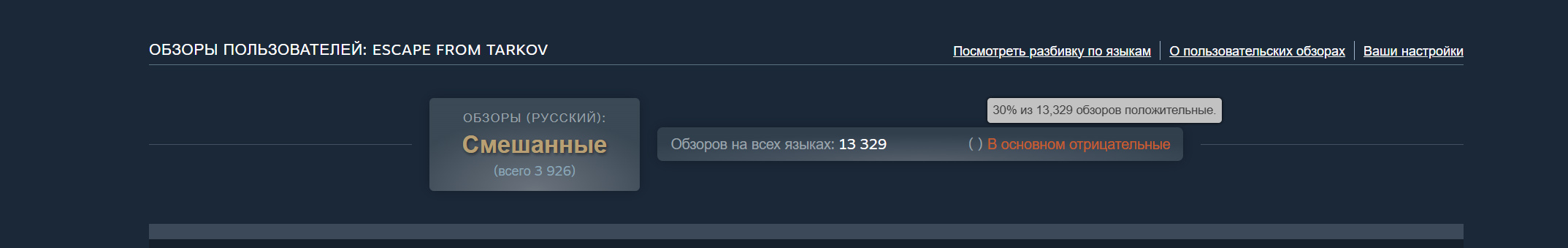40% рейтинга в Steam: игроки раскритиковали Escape from Tarkov