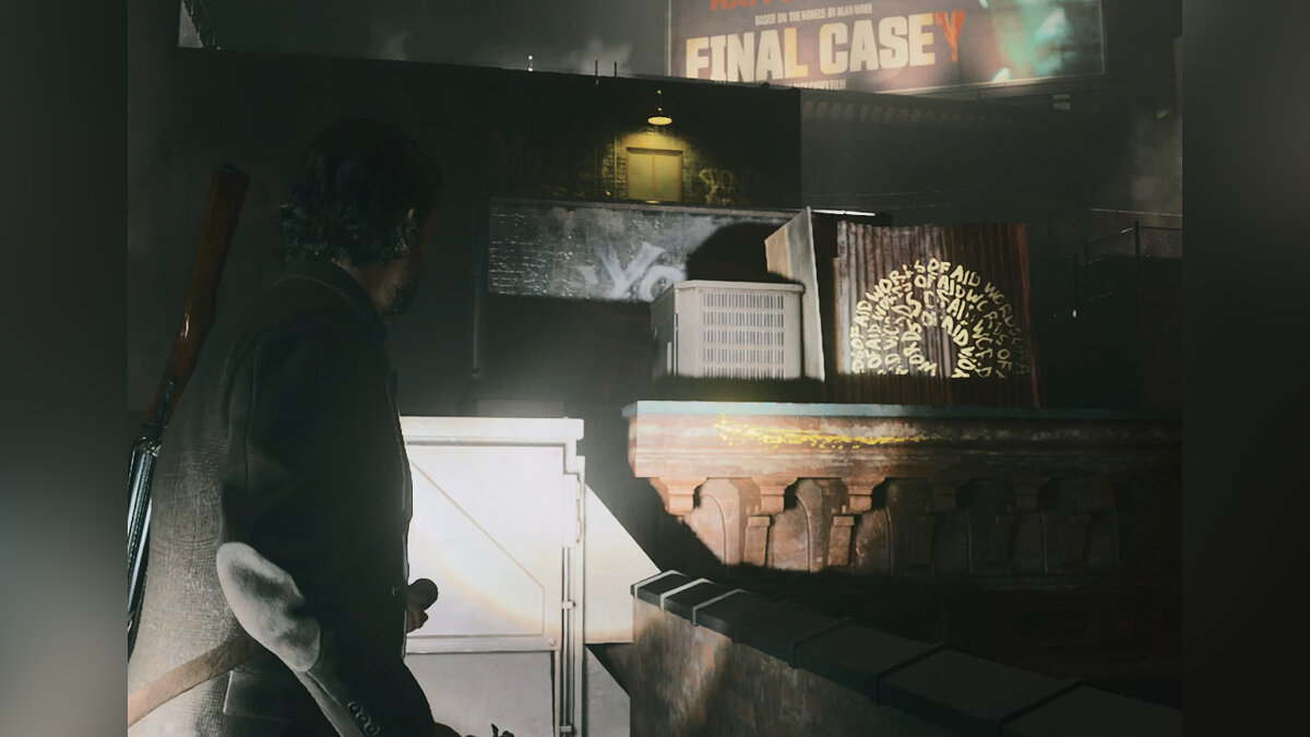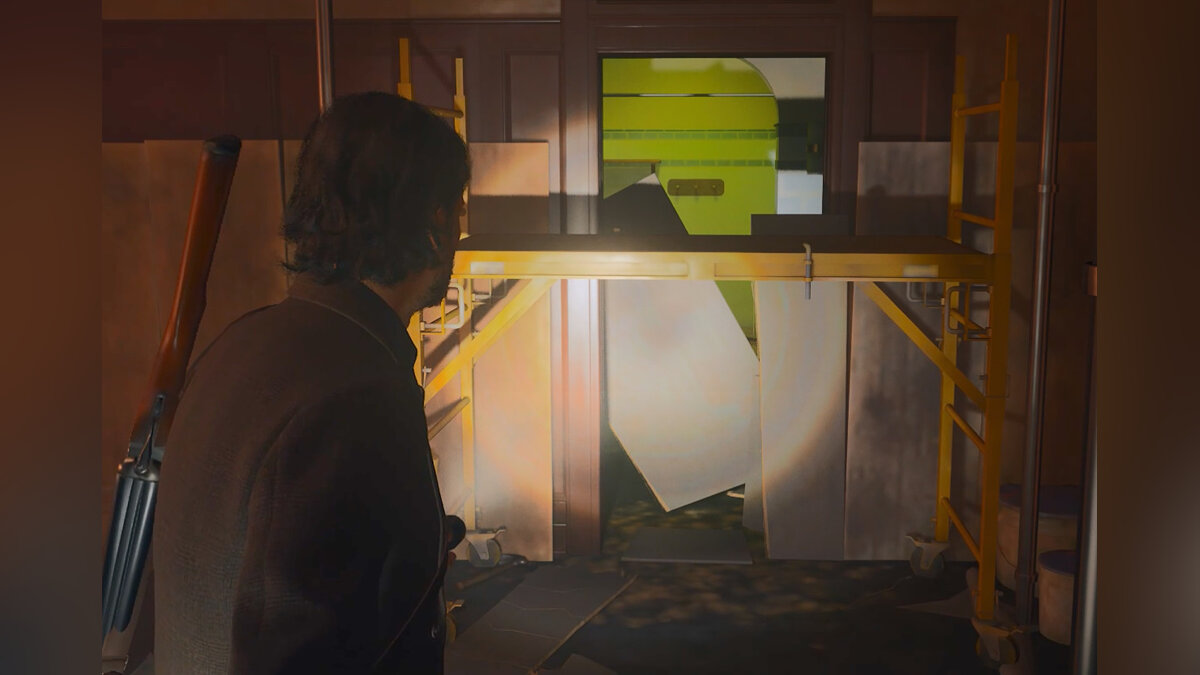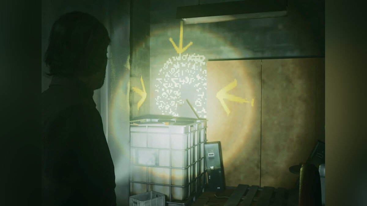 "После спуска с лестницы вы увидите стрелки, которые указывают на что-то. Мы пробовали менять все доступные сюжеты (так как локация закольцована, вы можете вернуться сюда в любой момент позже), но ничего не происходило." — Там надо просто выстрелить в этот лист гипсокартона (видимо), он разобьется и откроется слово, на которое указывают стрелки.