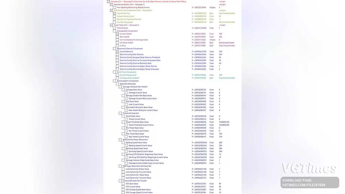 Функции и команды: Item/Ammo Editor — Редактор предметов/боеприпасов. SVR Ammo Slot Component — Компонент слота боеприпасов SVR. Player Pawn — Игровой персонаж. Как запустить: Открыть «Cheat Engine»; Нажать «Load» и выбрать таблицу; На ...