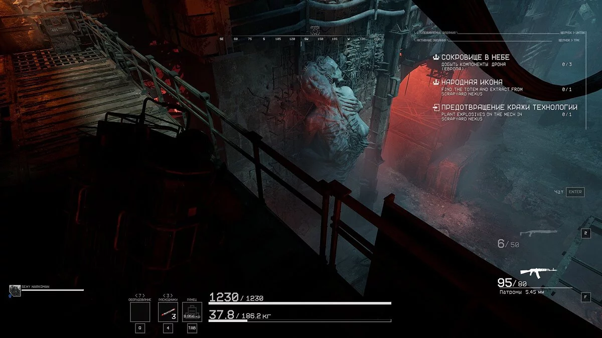 Несмотря на статус раннего доступа, в игре уже полно всякого оружия, которое можно улучшать и пересобирать. Большинство пушек взяты из реальной жизни. Тут вам АК-47, M4, FN SCAR и даже SVD. Разнообразие доступных модов дает возможность выбирать различные тактические ситуации, будь то скрытное прохождение или полноценное сражение с экзоскелетами. Также есть возможность покупать контейнеры для лута и рамы, к которым эти контейнеры крепятся. Например, вы можете нацепить огромное хранилище и «пылесосить» всю локацию, но при этом потеряете возможность подбирать вражеское оружие. А еще есть особый лут, и для его подбора потребуется уникальный отсек для больших предметов. Главное — особо не раскошеливаться на крутые обвесы ради бессмысленной вылазки. В случае неудачи всё ваше приобретенное добро останется рядом с местом гибели. Если не сможете забрать его на следующем заходе, можете попрощаться с экипировкой.