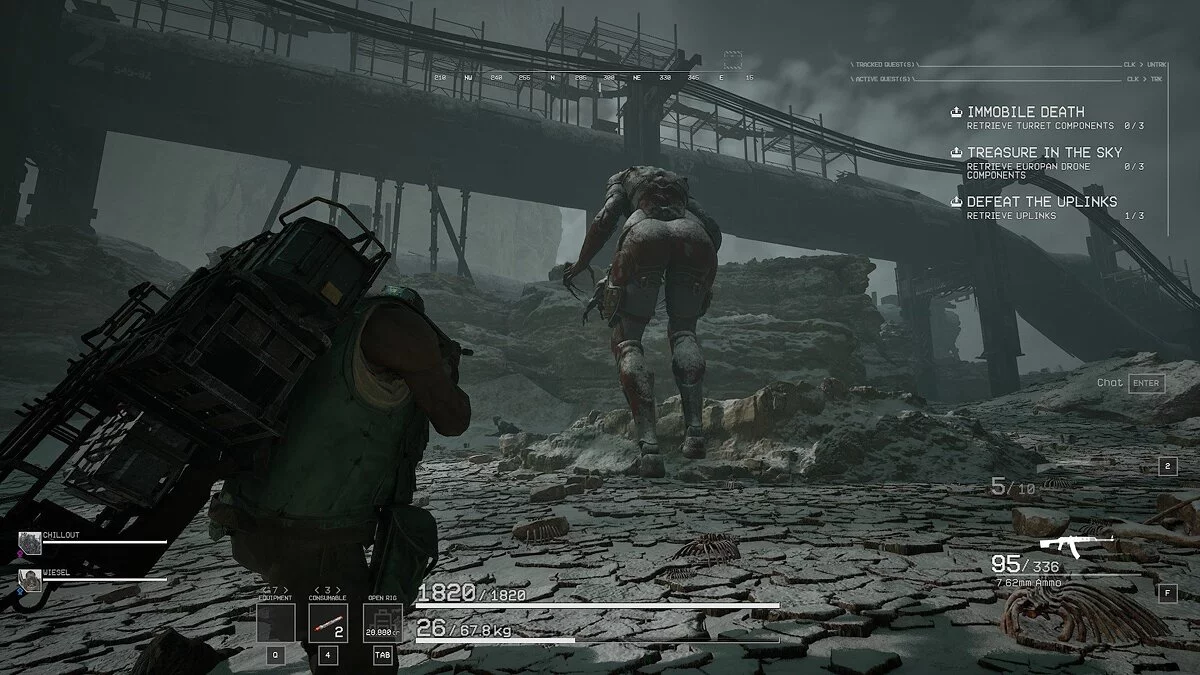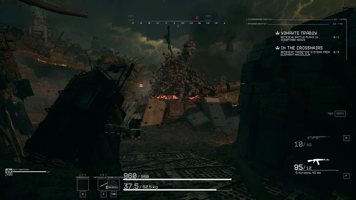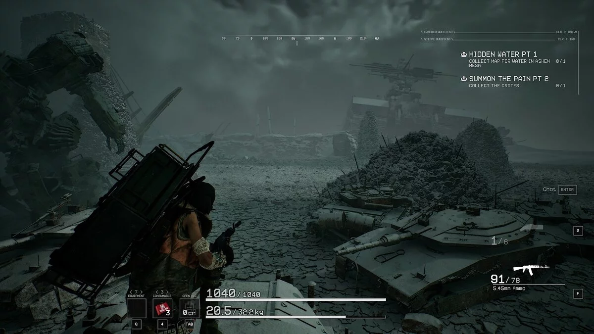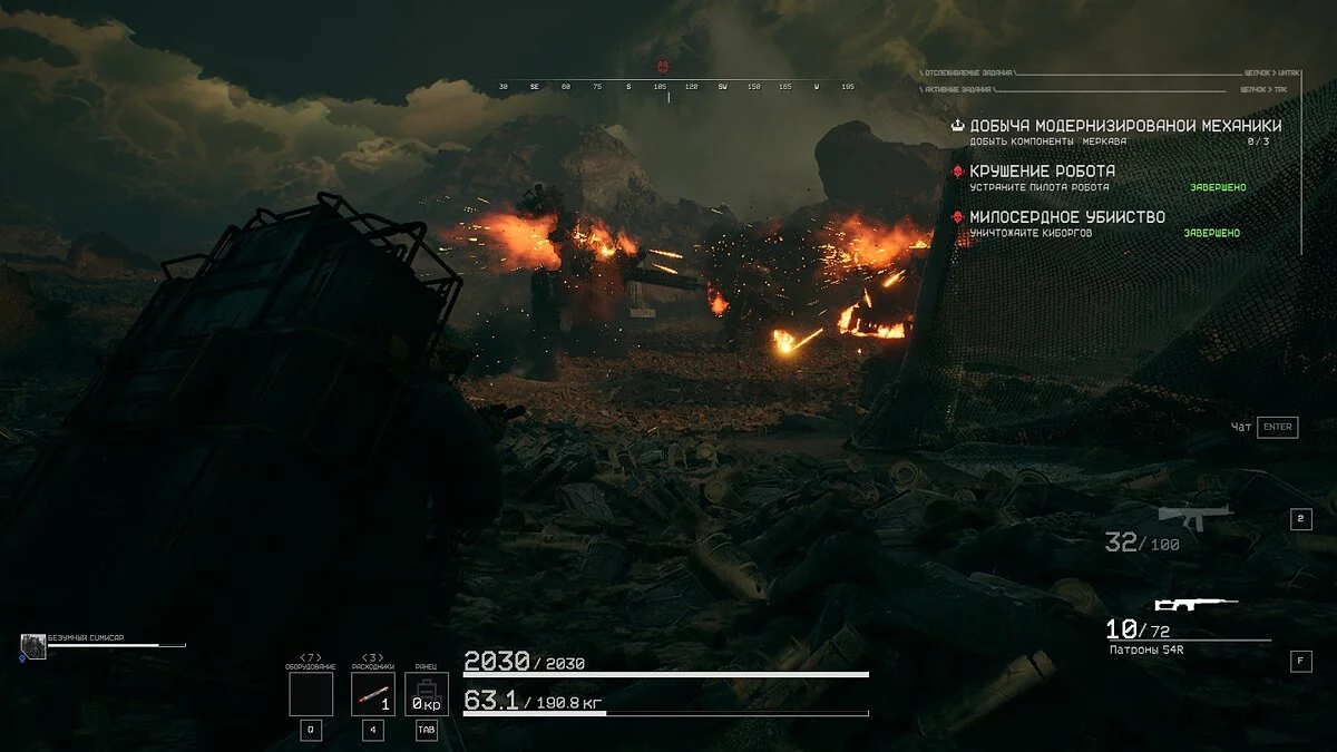 В отличии от «Таркова» и Hunt Showdown, где матч может затянуться на 40 минут, в The Forever Winter одна вылазка в среднем длится около десяти. Заходите на карту, собираете лут и выходите. Всё просто до тех пор, пока не возьметесь за местные квесты. Они довольно разнообразные: убить босса, собрать определенное количество ресурсов, спасти пленников или вытащить пилота меха и дотащить его до убежища. Некоторые миссии по дизайну похожи на EFT: пойди туда — не знаю куда, принеси то — не знаю что. С заданиями вылазки обретают больше смысла. Главное — не пытаться убивать боссов в одиночку.
