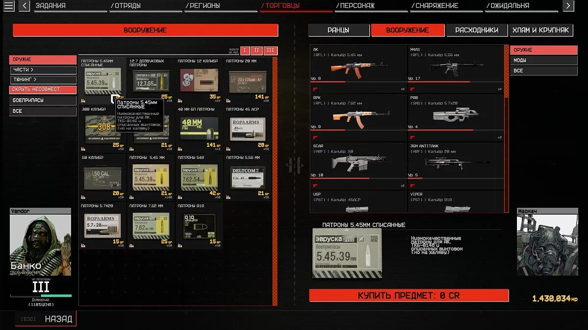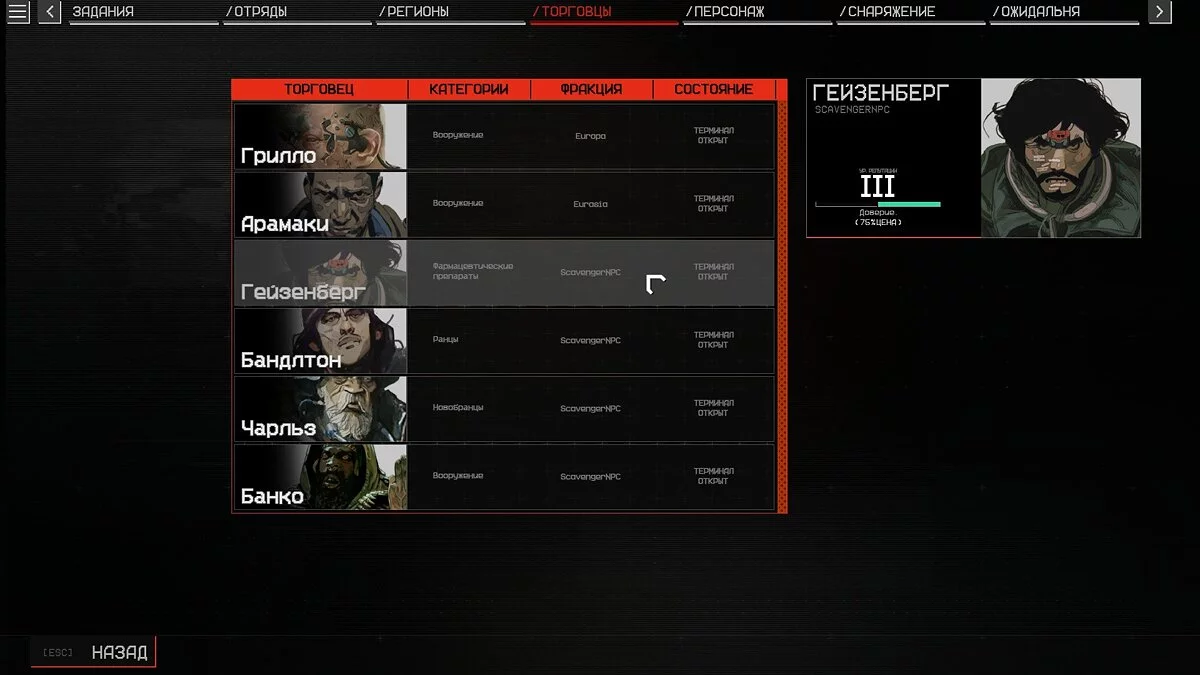 В зависимости от роста репутации у торговцев определенной фракции на прилавках будут появляться более экзотические стволы и обвесы. Отношения с продавцами можно повысить за счет продажи уникальных предметов и выполнения квестов. Если же бездумно стрелять по всем подряд на вылазках и устраивать бойни, то с положительной репутацией можно распрощаться. В The Forever Winter всегда приходится чем-то жертвовать.