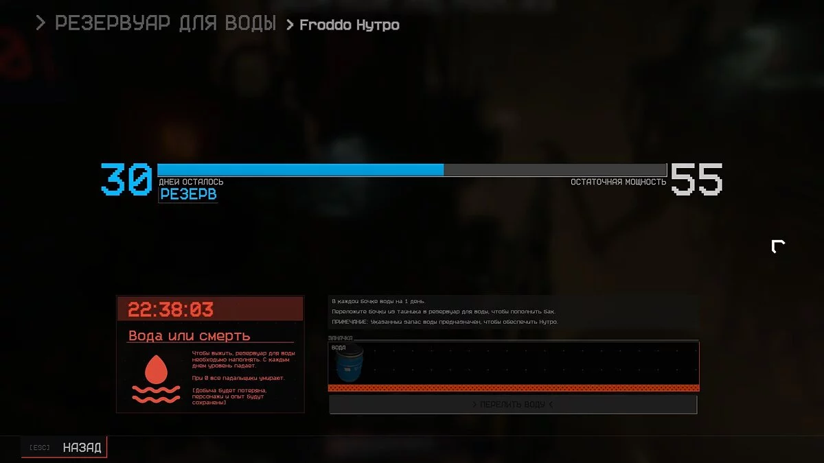 Самый же важный ресурс — это вода, источник жизни хаба, от ее количества зависит, сколько дней вы сможете не заходить в The Forever Winter. То есть одна канистра — одни сутки бездействия. Таймер идет в реальном времени, независимо от того, включена у вас игра или нет. Как только бак в хабе полностью опустошается, область перезагружается. Весь прогресс, включая квесты, инвентарь и репутация, обнулится полностью. Вдобавок на критических отметках многие услуги и возможности в хабе становятся недоступными. Пока крупные издатели заставляют игроков возвращаться к проектам ради баттл-пасса и косметических улучшений, разработчики The Forever Winter ставят жесткое условие, которого может запросто угробить весь прогресс. Сурово, но очень соответствует выбранному разработчиками сеттингу.