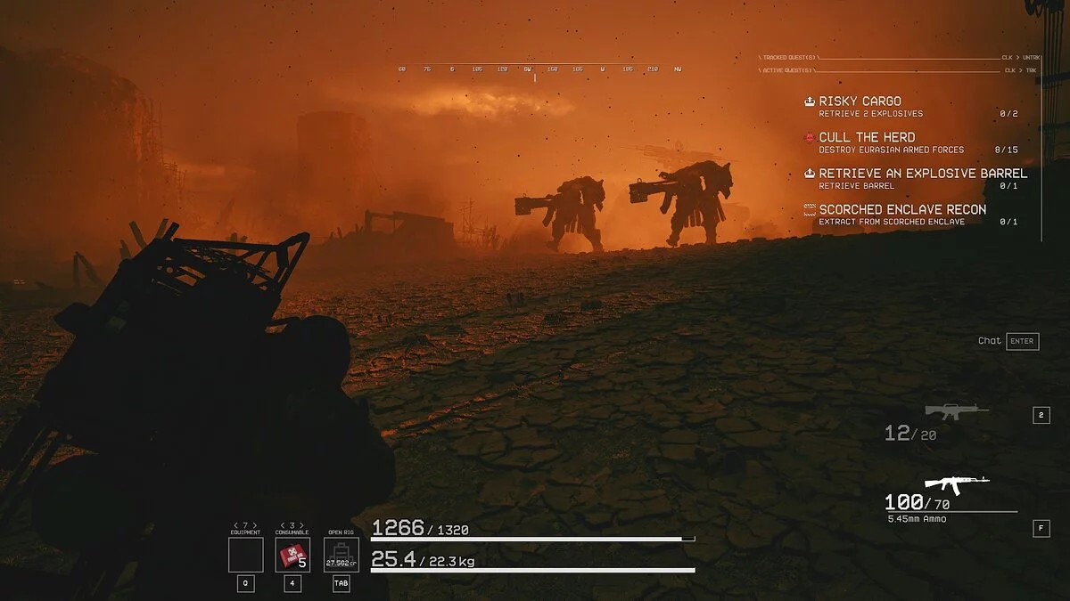 Схватки с противниками всегда напряженные и непредсказуемые. Группа врагов может запросто пробежать мимо вас в поисках более серьезной цели, а может начать преследовать, даже когда вы особо не светились во время мародерства. Убивают в игре очень быстро, а медикаменты не восстанавливают здоровье за считанные секунды. Если на вылазку взять гранатомет или противотанковую винтовку, есть риск привлечь внимание мехов и танков. Если последних еще можно как-то уничтожить, то первых лучше даже не пытаться.