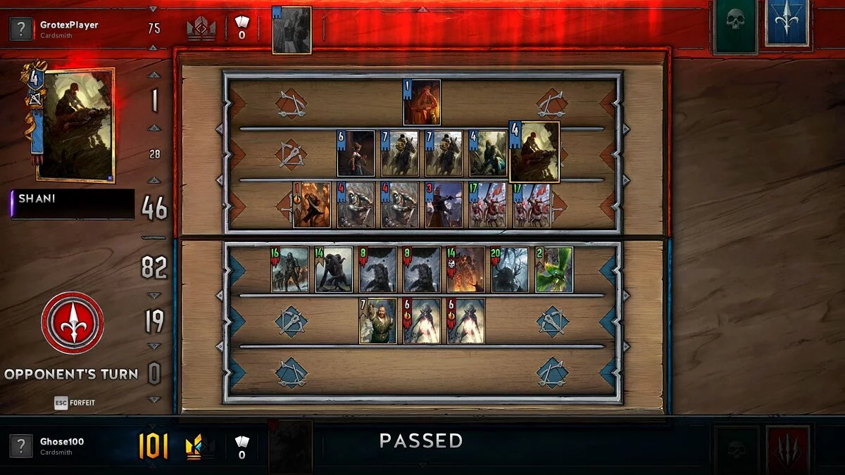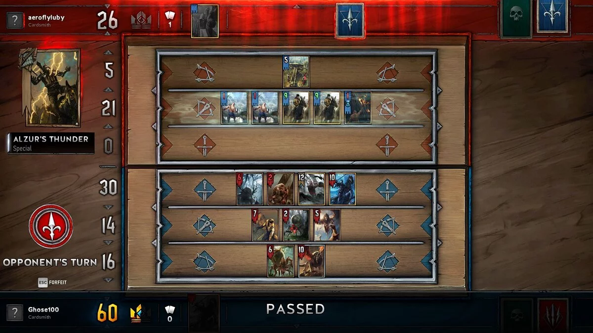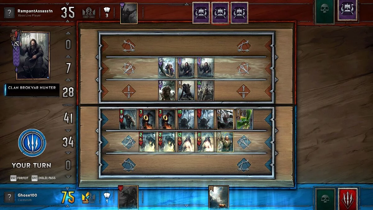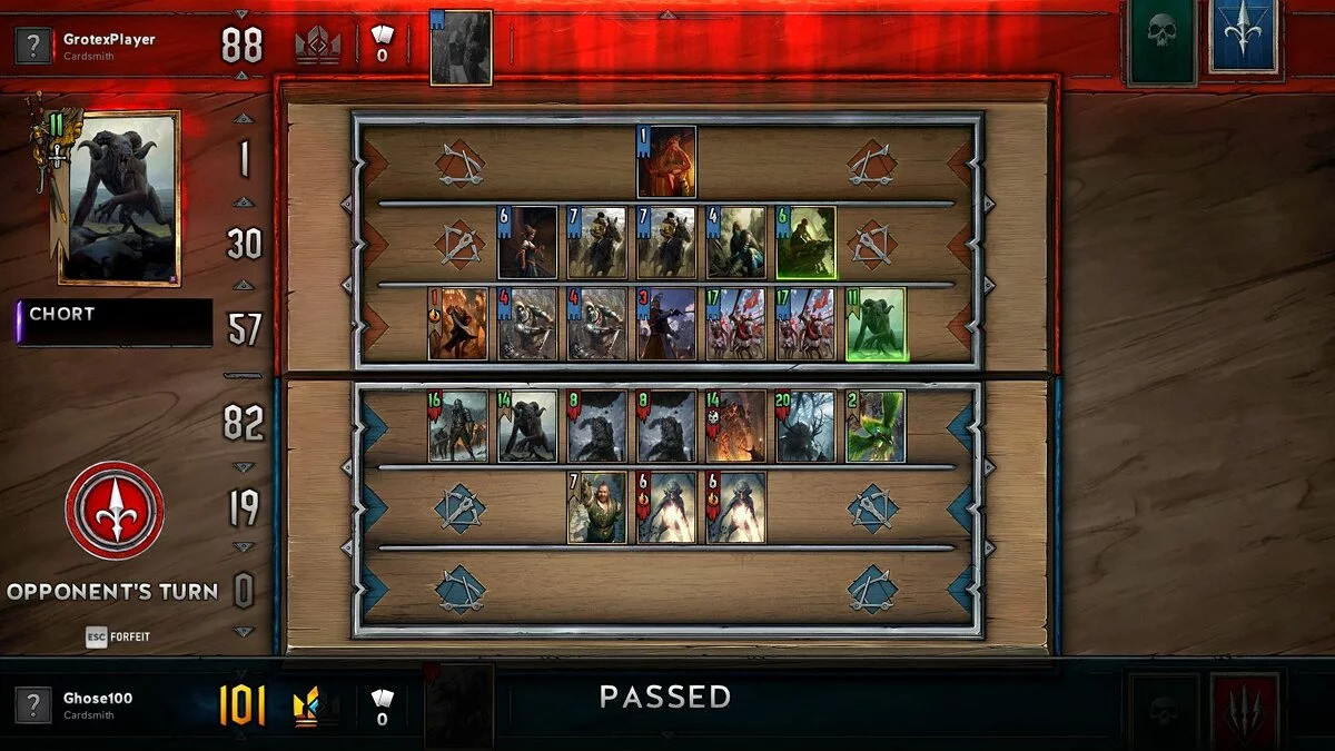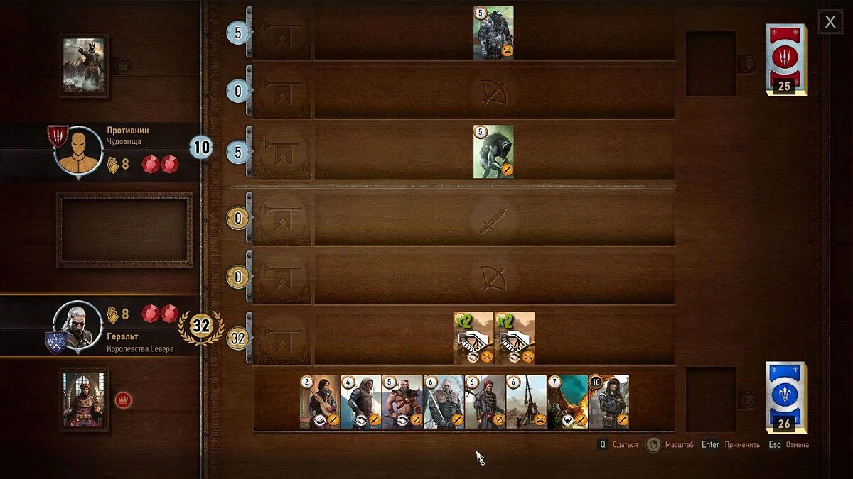 По форме Гвинт незначительно отличается от своего аналога в «Ведьмаке». Дизайнеры перерисовали интерфейс и обновили внешний вид всех карт. Управление в целом то же, работают те же самые клавиши, можно играть только на мышке или клавиатуре, а можно на геймпаде. Гвинт кроссплатформенная игра — на PC я не раз сражался с пользователями Xbox One. В плане ощущений все абсолютно то же самое. При этом нужно понимать, что Гвинт не быстрая игра, некоторые операции протекают дольше, чем хотелось бы. Есть, что оптимизировать. Разработчикам предстоит продумать, как действовать против троллей, которые затягивают каждый ход на 30 секунд. Также необходимо что-то сделать с игроками, которые, недовольные твоей колодой, выходят в самом начале матча.