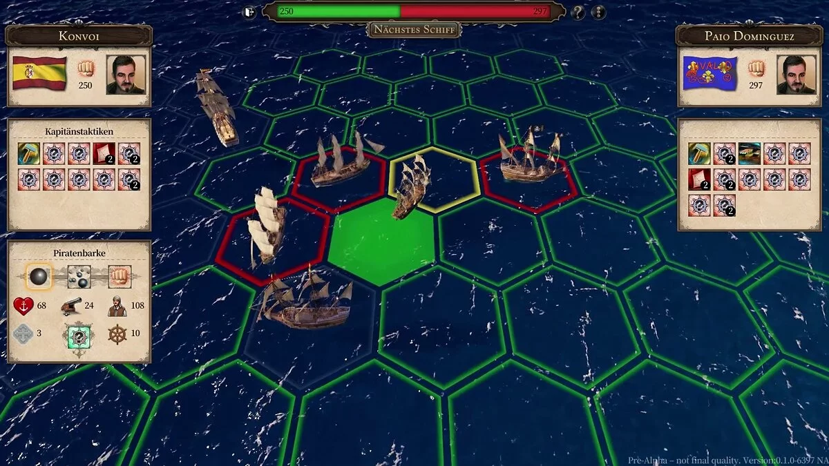 Во время сражения игровое поле делится на гексы-клетки. Участники боя поочередно совершают ходы. Чтобы провести грамотную пушечную атаку, необходимо, чтобы атакующий корабль находился напротив жертвы — никакой «магии» в Port Royale 4 не завезли. Впрочем, одно послабление все же есть — это капитаны.
