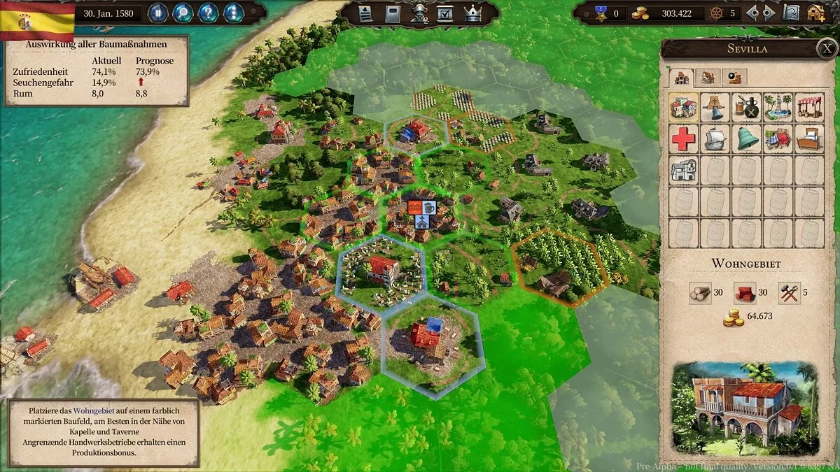 Например, плантация невдалеке от жилых домов не доставит радости жителям, зато снимет проблему рабочей силы. С другой стороны, церковь или лечебница, напротив, поднимет дух горожан. Отследить «правильность» расположения того или иного элемента инфраструктуры можно при помощи умной системы гексов — она подскажет, где стоит возводить маленький свечной заводик, а где нет.