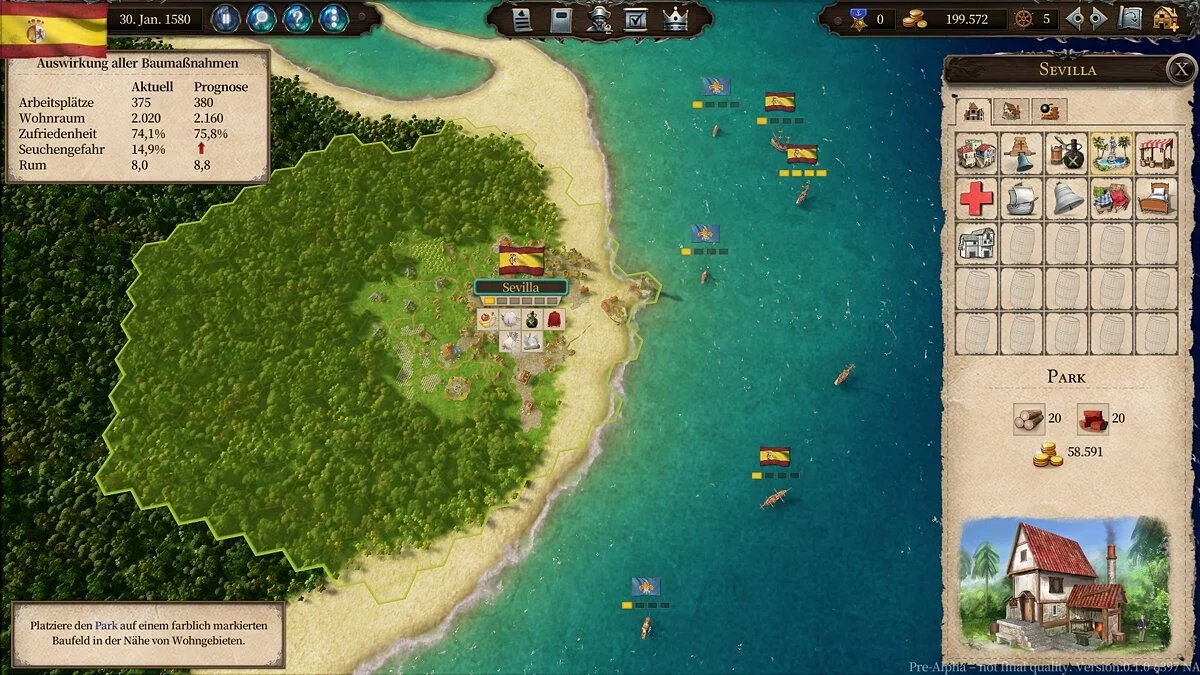 По словам разработчиков, в общей сложности в Port Royale 4 будут представлены 60 населенных пунктов. При этом каждый из них может производить максимум четыре товара. Задача игрока состоит не только в правильном распределении ресурсов, но и в грамотном развитии подконтрольных ему колоний. На этом этапе все довольно просто и привычно для тех, кто хоть раз в жизни запускал один из градостроительных симуляторов — подойдет даже цикл Tropico. Возводим постройки, параллельно следя, чтобы моральный дух жителей колонии не сильно ушел в минус. По словам западных журналистов, познакомившихся с альфа-версией проекта, тут важно соблюсти баланс интересов — экономики и социума.