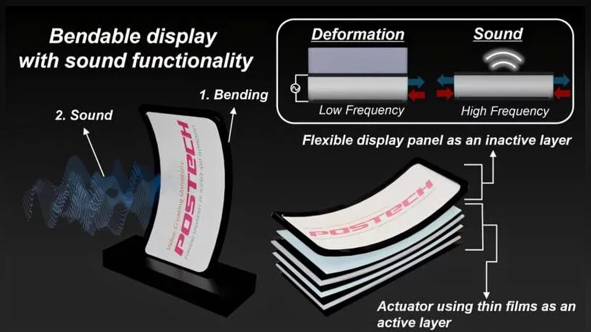 Но главная «фишка» технологии — мультифункциональность. Тот же актуатор, меняющий форму экрана, при высокочастотных импульсах превращает поверхность OLED в полноценный динамик. Вибрации полимера создают звуковые волны, устраняя необходимость в отдельной акустической системе. Исследователи уже испытали технологию на панели размером со смартфон. В демонстрациях экран динамически изгибался, воспроизводя четкий звук, сохраняя при этом гибкость и толщину менее миллиметра.