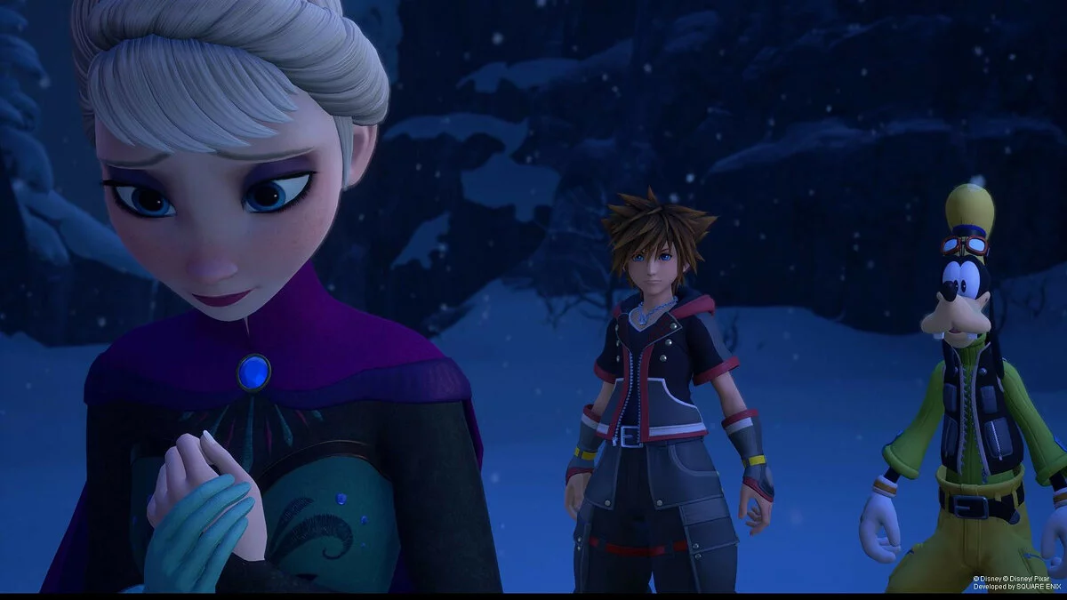 Также в трейлере показали девушку по имени Эльза (которая была одной из главных героинь мультфильма). По сюжету, она живет отдельно от других людей, чтобы не причинять им боль, однако Сора хочет спасти девушку и не дать ей «перейти на тёмную сторону».