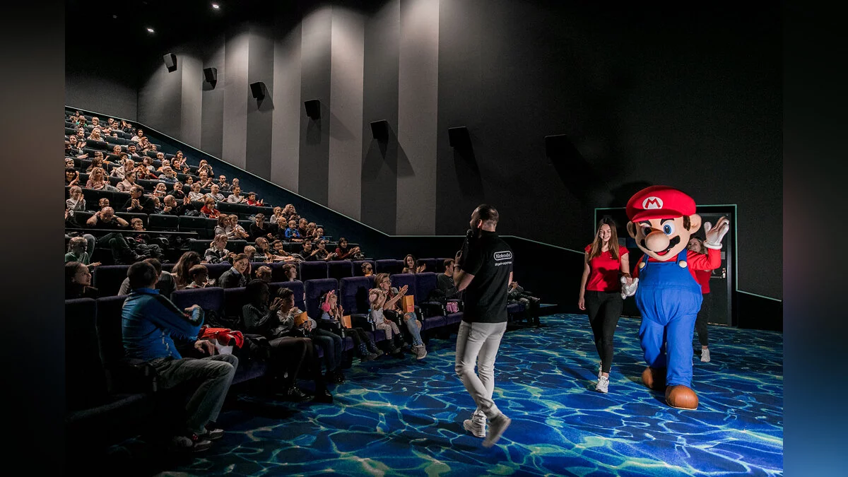 Внезапно в одном из залов кинотеатра, в самом начале мультфильма, появились главные персонажи вселенной видеоигр Nintendo — Марио и Луиджи, которые подарили каждой семье консоль Nintendo Switch.