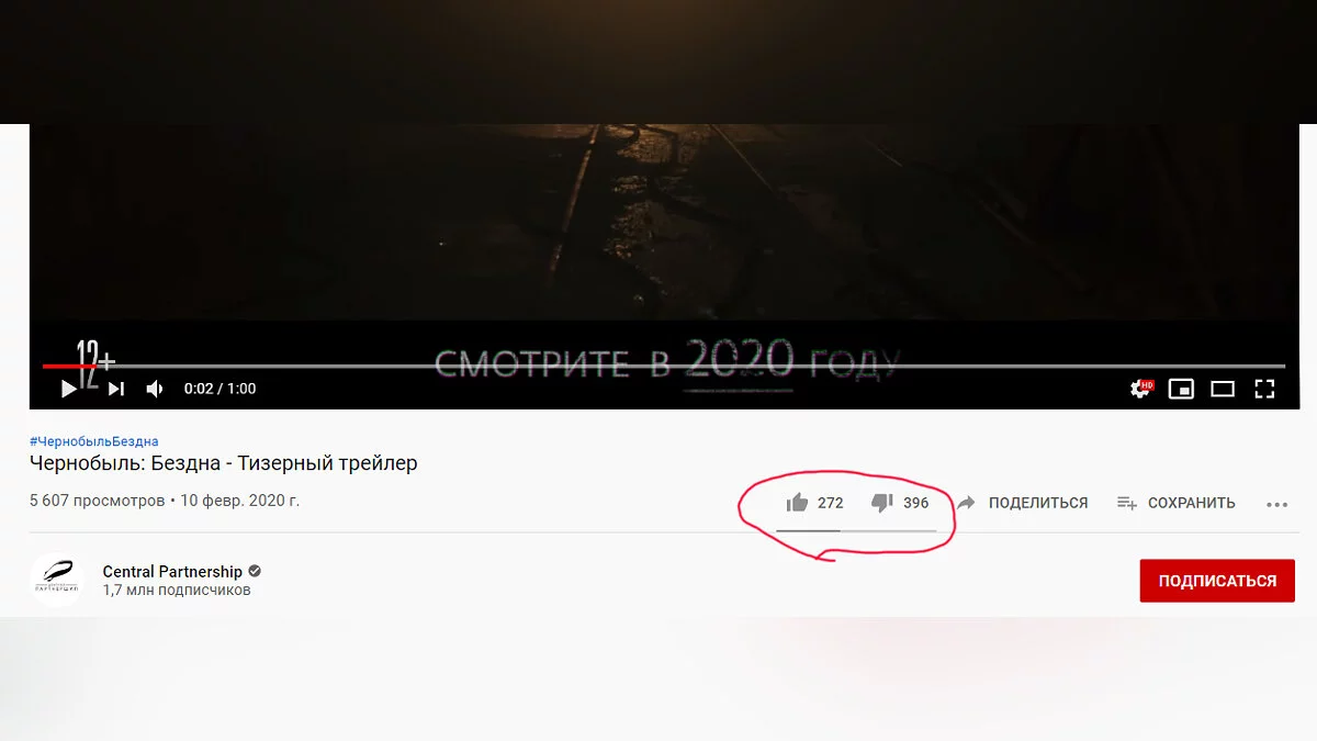 Сегодня вышел тизерный трейлер предстоящего российского фильма «Чернобыль: Бездна». Как оказалось, он вызывал у пользователей YouTube противоречивые реакции.