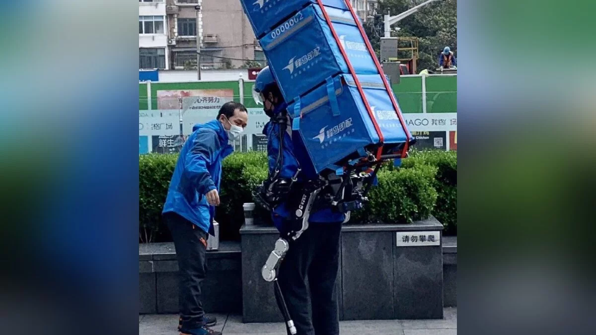 Straight out of a video game: China’s ubiquitous food-delivery app https://t.co/O6kOT9RrJG caught the Chinese internet’s attention this week after testing a powered exoskeleton for its couriers. The exoskeleton endows the wearer with the strength to carry up to 50 kg with ease. pic.twitter.com/4elmxRhLDU