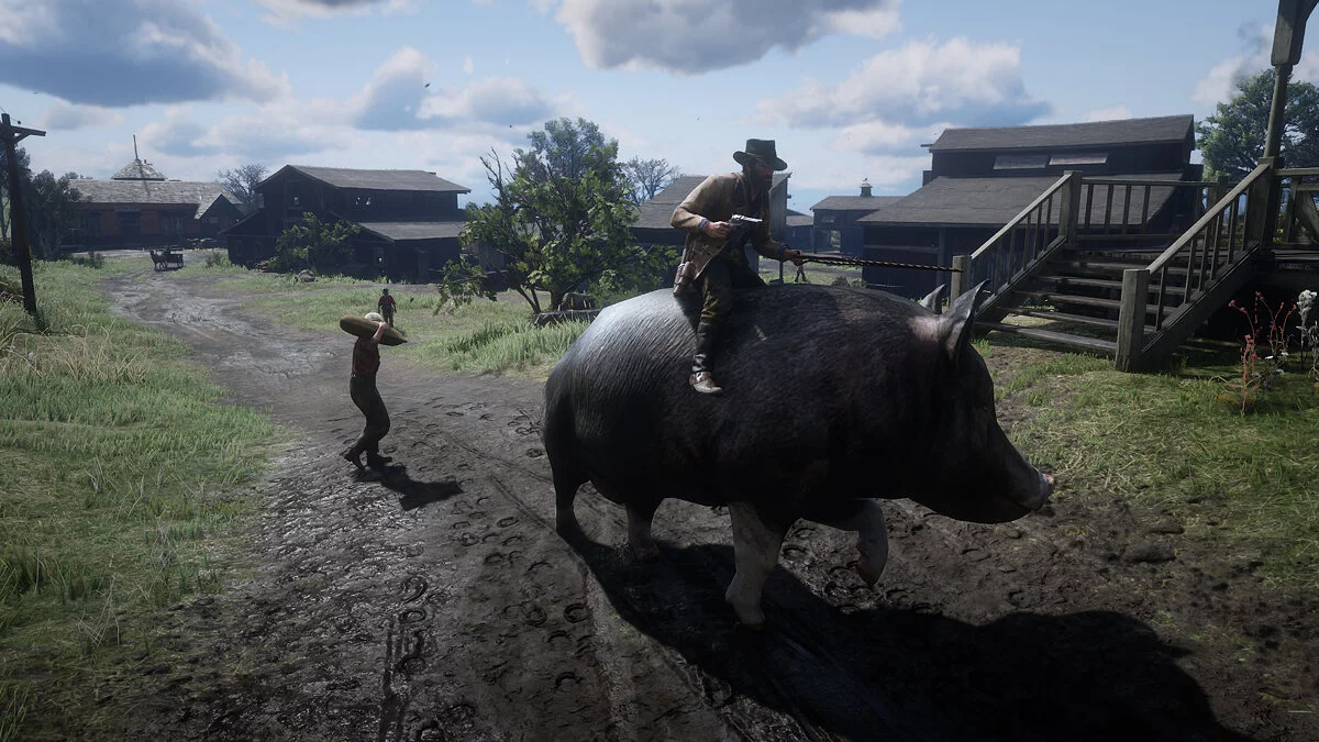 Огромные свиньи не единственные животные, которых можно оседлать. Например, Морган может запрыгнуть на гигантскую пуму, волка-великана и обычного медведя. Ведь медведи и так уже достаточно большие. Более того, с помощью зверей можно атаковать ничего не подозревающих прохожих.
