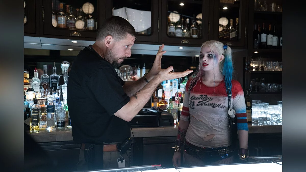 Дэвид Эйр и Марго Робби в образе Харли Квинн на съемках «Отряда самоубийц»
