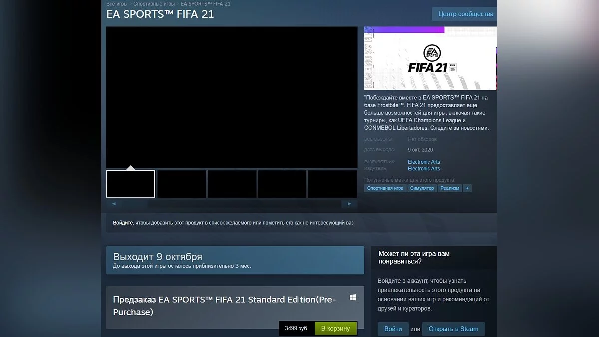 FIFA 21 уже можно предзаказать в Steam. EA назвала дату релиза и стоимость