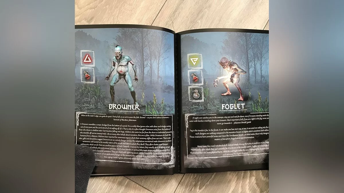 Бестиарий The Witcher 3 доступен только на английском языке и покрывает всех монстров, включая существ из дополнений. Здесь можно оценить книгу в видеоформате.