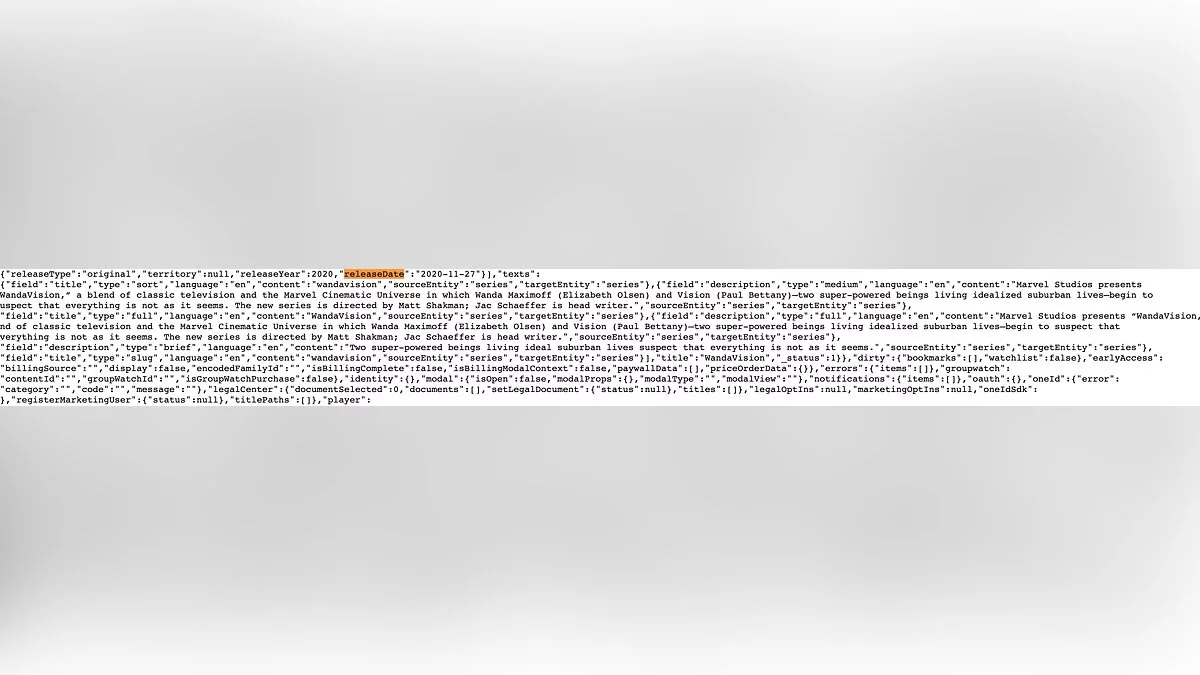Авторы с портала Murphy's Universe покопались в коде сайте сервиса Disney+ и обнаружили, что «ВандаВижен» выйдет 27 ноября 2020 года. Данные о назначенной дате были обновлены 18 сентября.