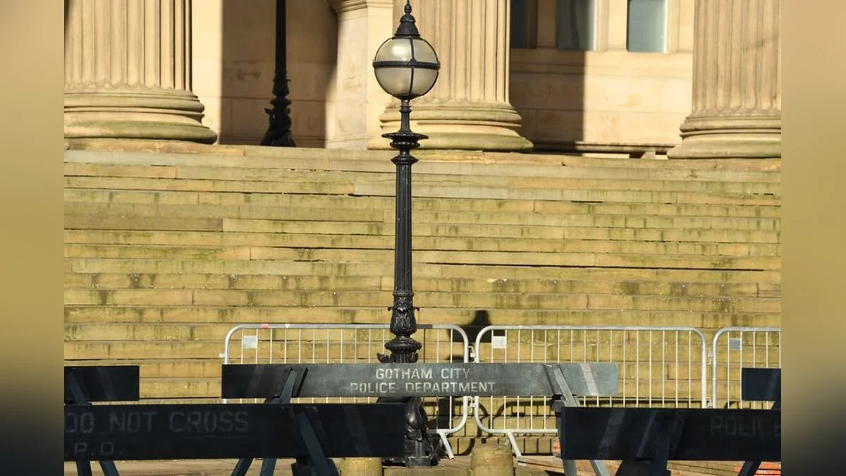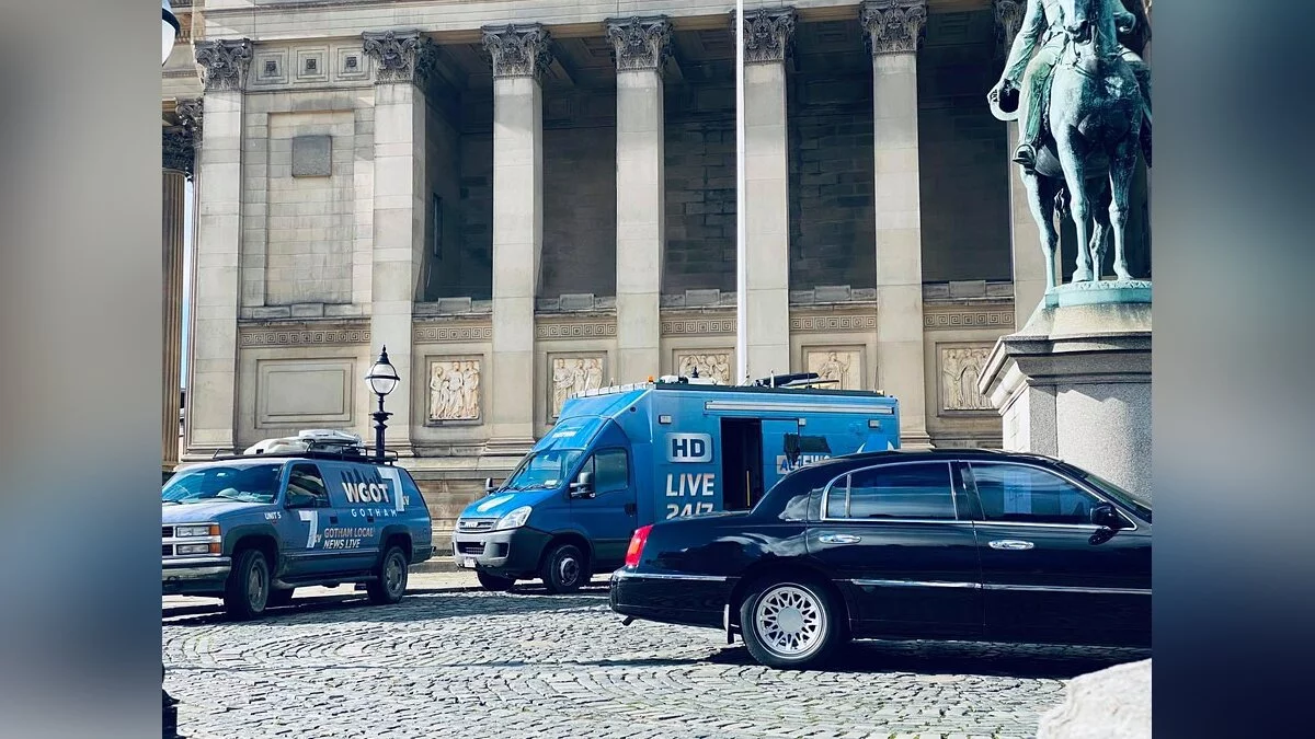 Важной локацией «Бэтмена» выступил Зал Святого Георгия, здание на площади Святого Георгия, напротив железнодорожного вокзала Лайм-стрит в центре Ливерпуля. Вокруг него на фотографиях можно увидеть машины полиции и телеканалов Готэма, а также полицейское ограждение.