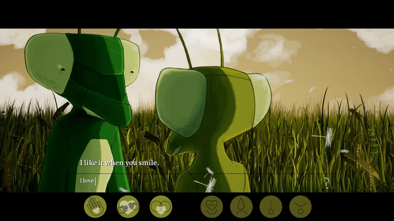 Don't Make Love — необычная игра про пару богомолов, которые находятся в отношениях. Вам предстоит сохранить баланс в диалоге со своим партнером. Играть можно как за особь мужского пола, так и за особь женского. При этом в игре нет правильных решений, а саундтрек меняется в зависимости от настроения вашего партнера.