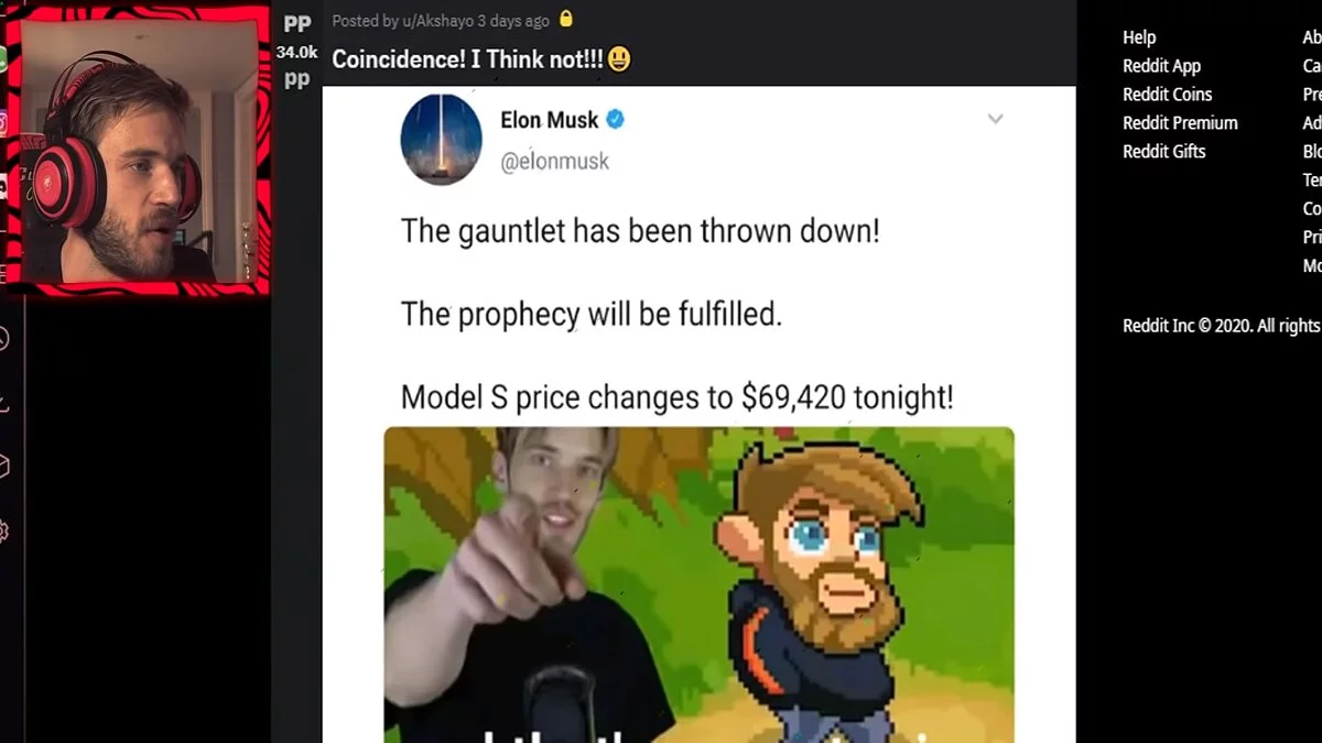 Популярный ютубер PewDiePie встал на защиту известного бизнесмена и изобретателя Илона Маска (Elon Musk), которого стали ругать в сети за меметичную шутку в Twitter. В ней Маск объявил об изменении цены на автомобиль Tesla Model S.
