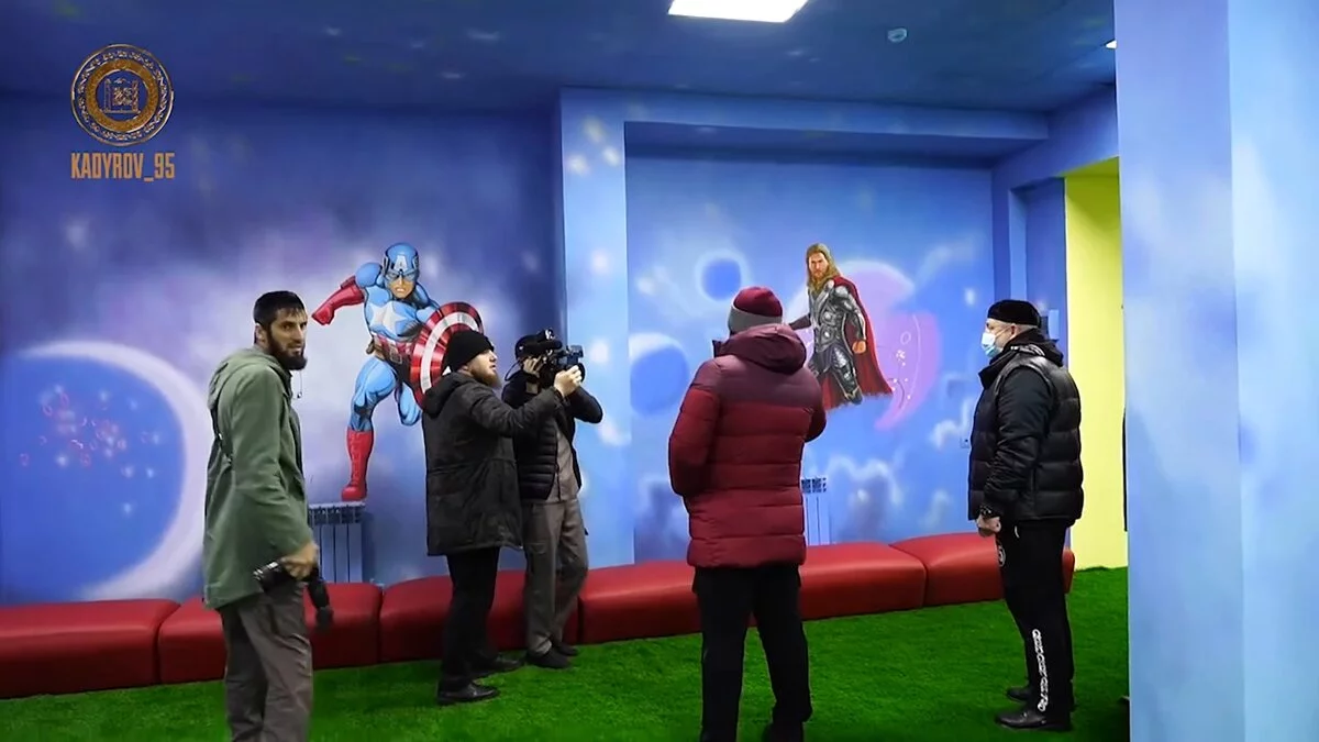 Рамзан Кадыров посетил детский центр в рамках проверки новых многоквартирных домов в центре Курчалоя. Глава Чечни раскритиковал изображения супергероев Marvel, которые были нанесены на стены детской площадки.