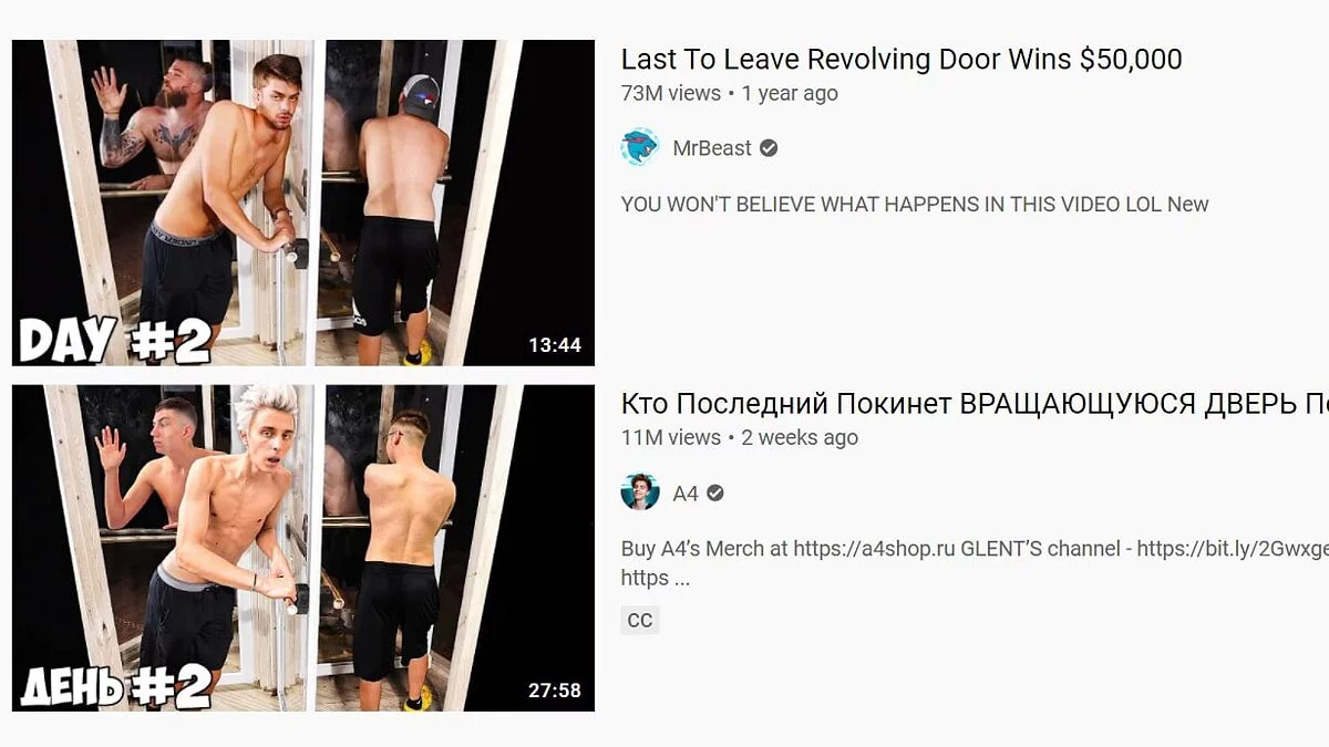 Популярный ютубер MrBeast, который зачастую разыгрывает большие суммы для своих подписчиков, обвинил канал на русском языке A4 в краже контента. Он обратил внимание на превью роликов, на которых были изменены лица.