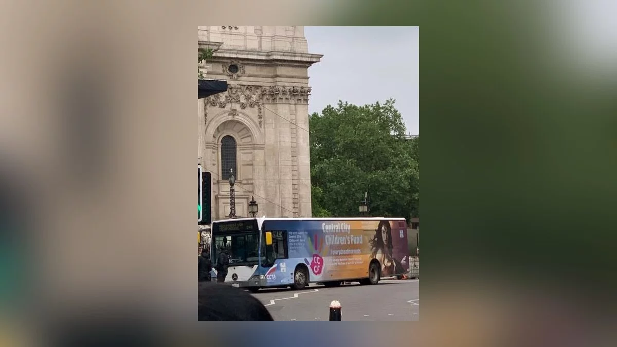 На другом кадре из Великобритании запечатлели автобус с рекламой детского фонда Централ-Сити, родного города Флэша. Поддерживает фонд сама Чудо-женщина, которую в «Расширенной вселенной DC» играет Галь Гадот (Gal Gadot).